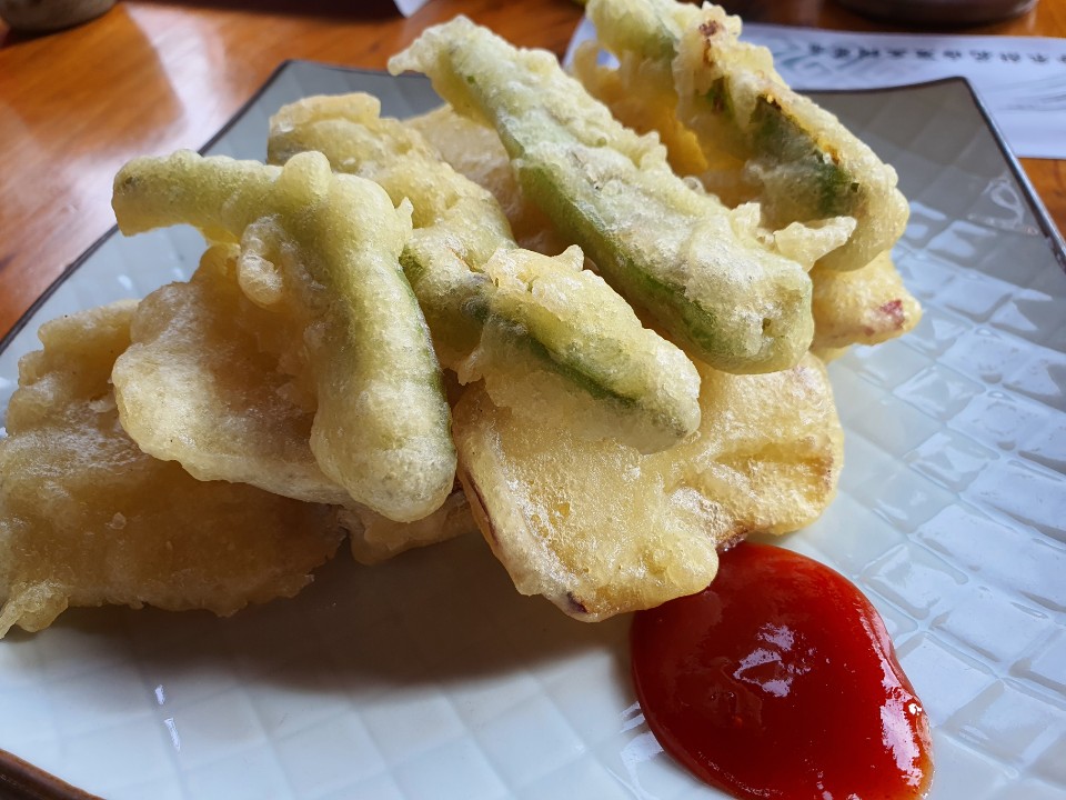 고추튀김과 고구마 튀김은 금방 튀겼는지