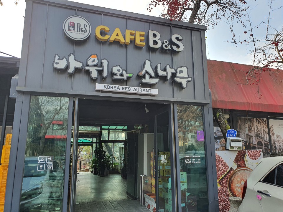 지금은 코로나 때문에 야외 테라스에서만 커피를 마실 수가 있다네요.