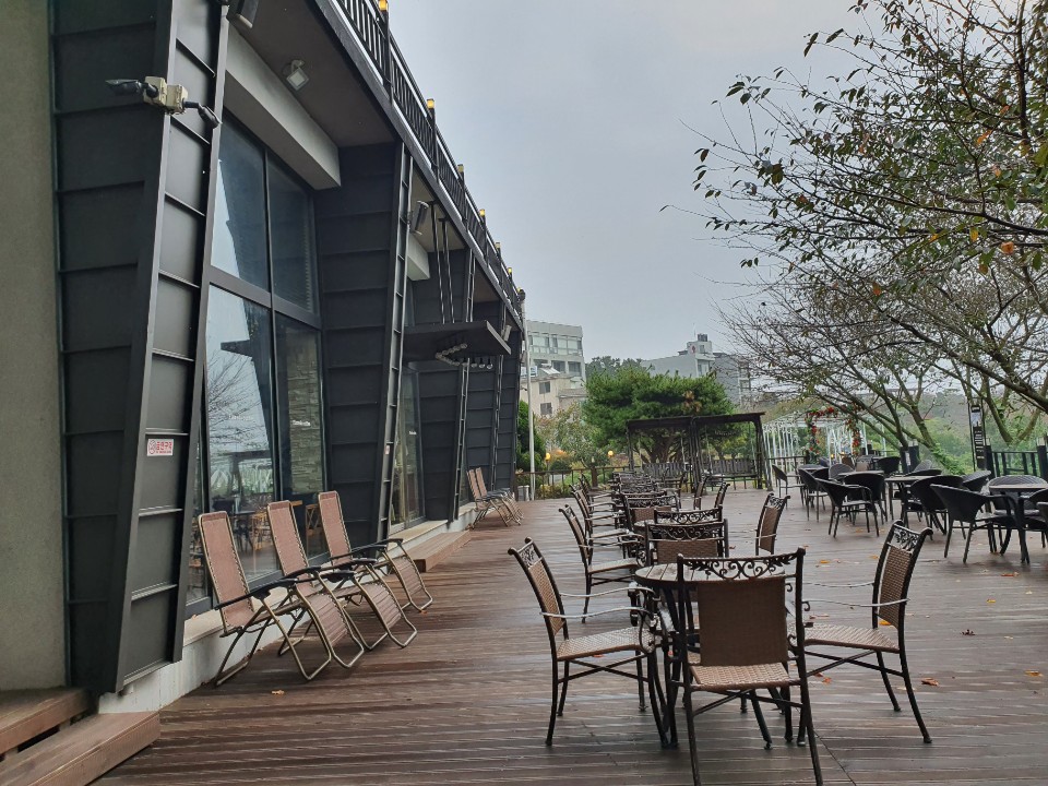 건물 뒤편에 요로코롬 넓직하니 야외 테이블이 준비되어 있어요.