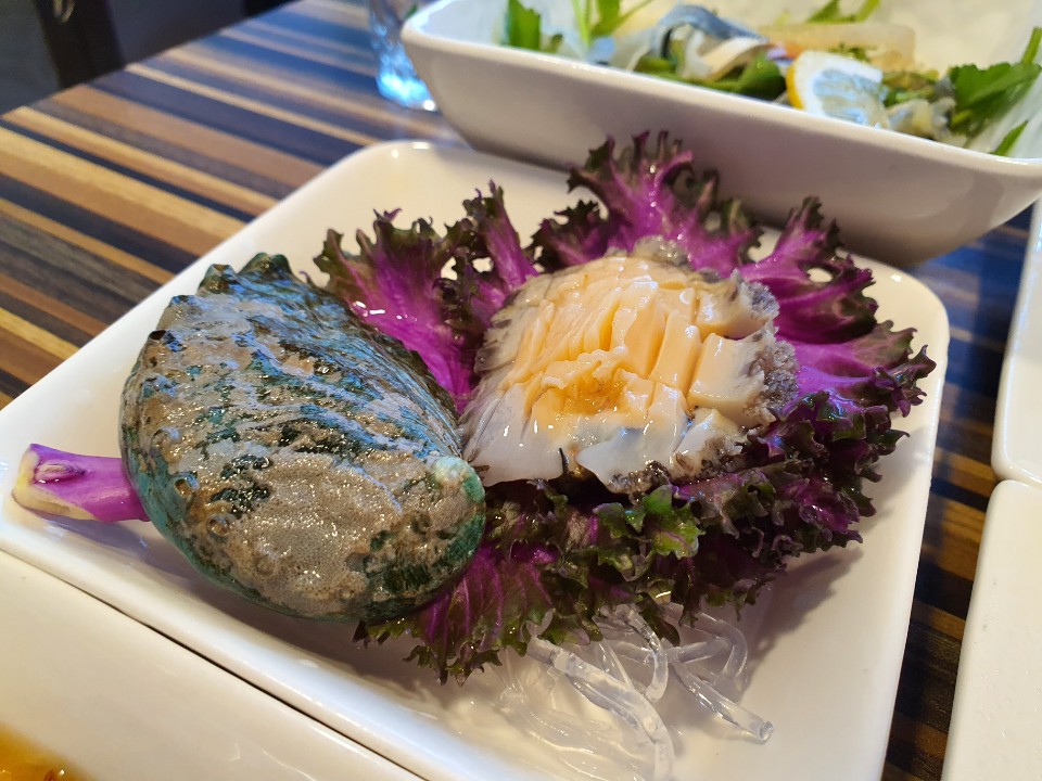 회도 몇점씩 전복껍데기 비스무리한 뚜껑에 개별로 나옵니다. ^^