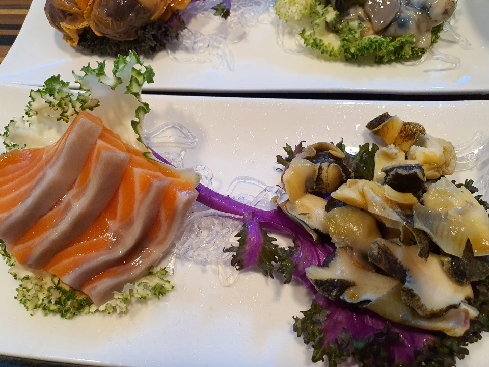전복회와 그 옆에 전어회인가..