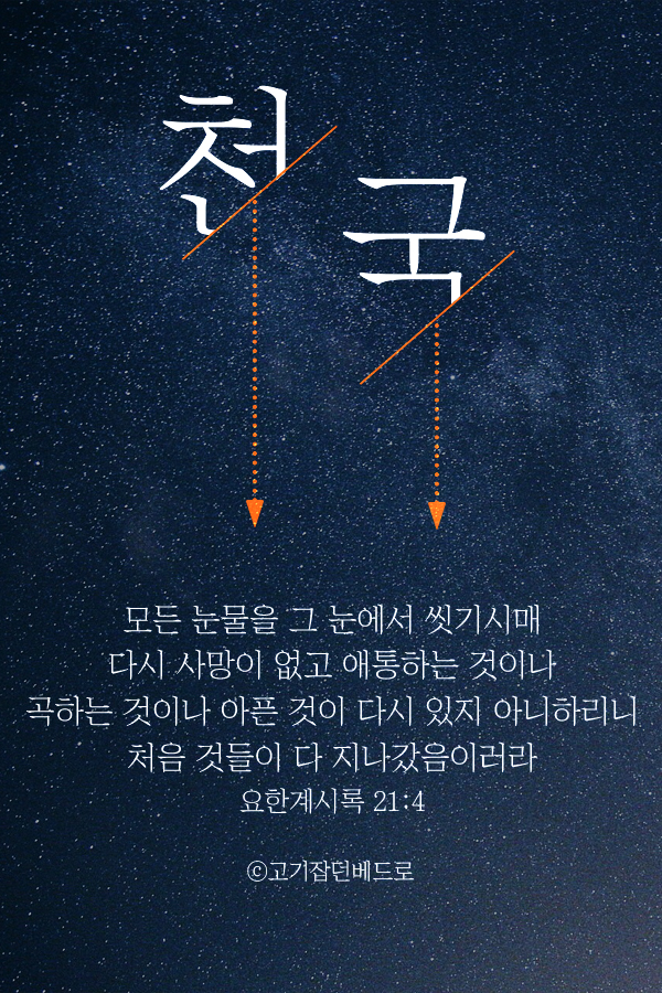 지옥은 상상조차 하기 싫은 고통스러운 곳인 반면 천국은 사망도 고통도 아픈 것도 없는 곳으로 알려주고 있습니다. 이 천국이 얼마나 아름답고 영광스런 곳인지 우리 인생들은 알지도 깨닫지도 못할 정도라고 하셨습니다.