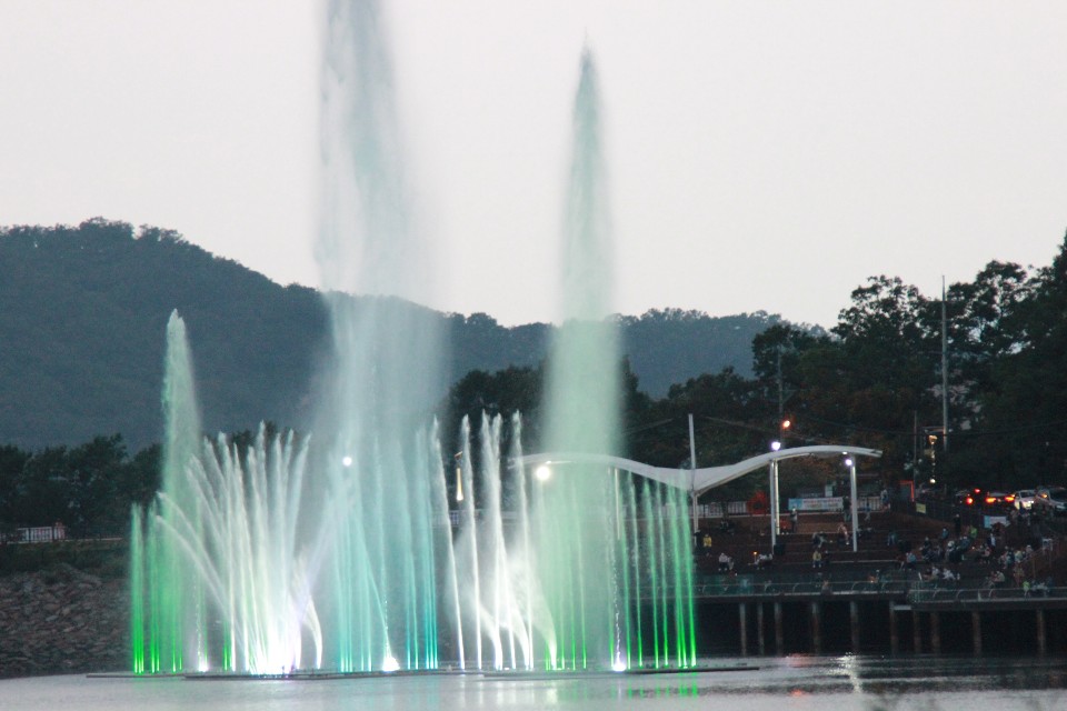 저수지에서 음악분수를 볼 수 있다는 것은 매우 즐겁고 신나고 아름다운 볼거리예요.