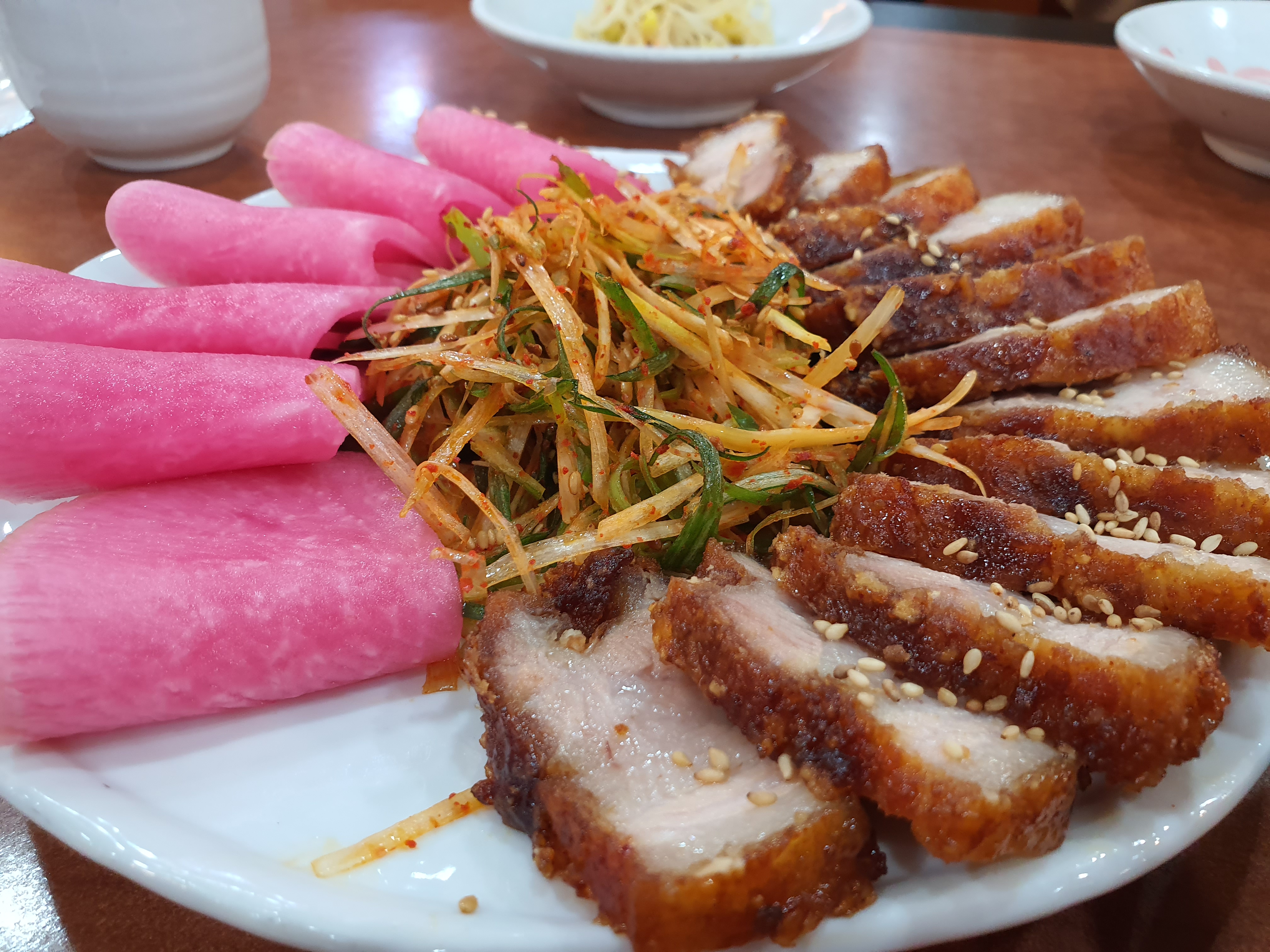 핑크빛 물들인 무쌈이 식욕을 자극하더라구요.