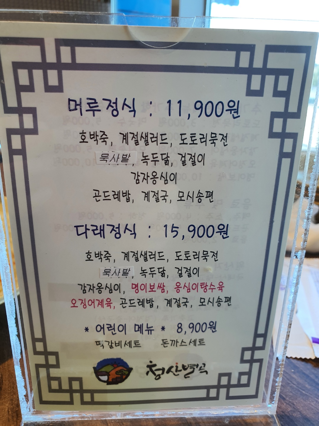 청산별곡에는 머루 정식과 다래 정식 두 종류가 있는데