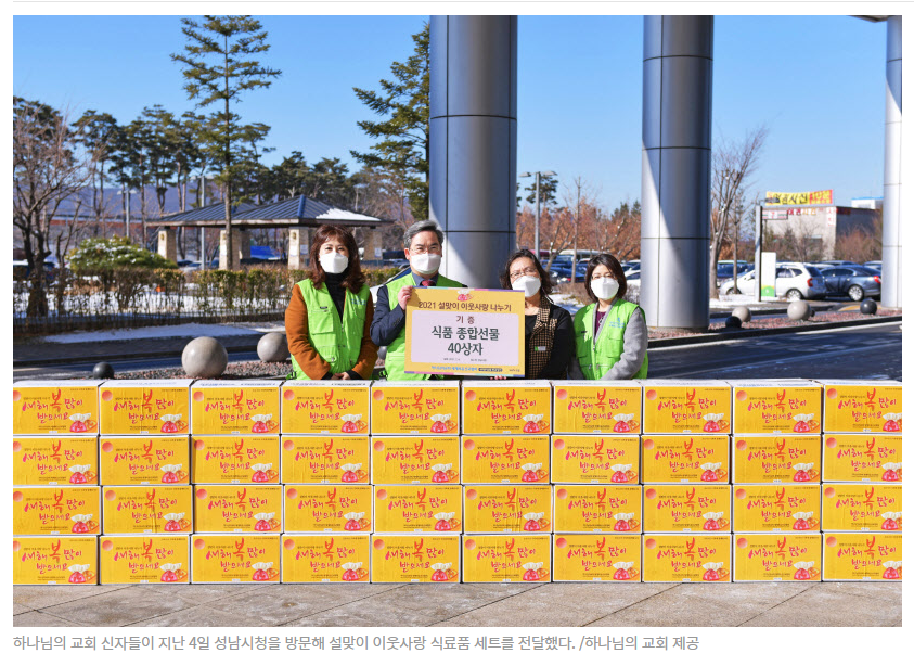 하나님의 교회 측은 "코로나19 상황이 길어지면서 이번 설에도 외롭고 힘든 분들이 많아 안타깝다"며 "항상 잊지 않고 함께하는 손길이 있으니 힘내시길 바란다. 평안하고 건강한 명절 보내시고 새해 소망도 모두 이뤘으면 한다"고 전했다.
