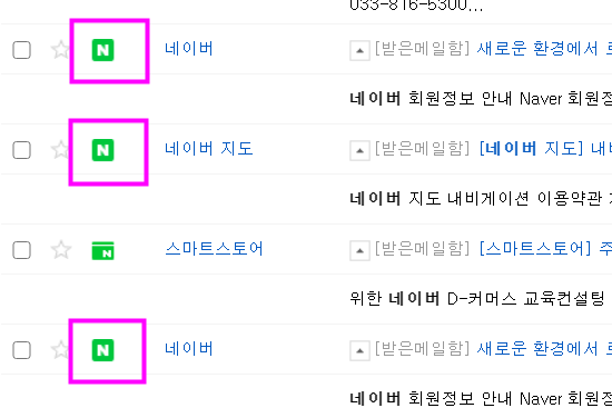 네이버에서 보내는 모든 메일에는 앞에 초록색 바탕에 흰색 N 자가 있음을 명심하세요. ^^