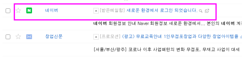 그리고 네이버 측에서 보내는 메일은 [네이버]라고 글자가 붙어 있습니다.