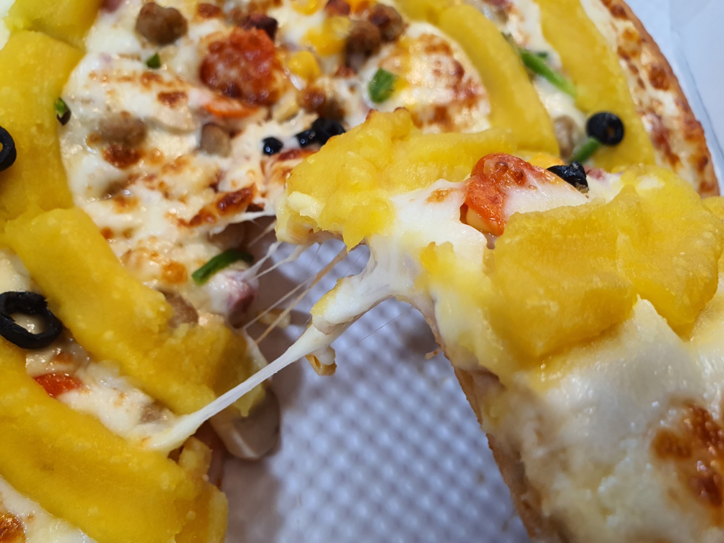 고구마 무쓰 듬뿍 들어간 스위트 골드 피자여요. ^^