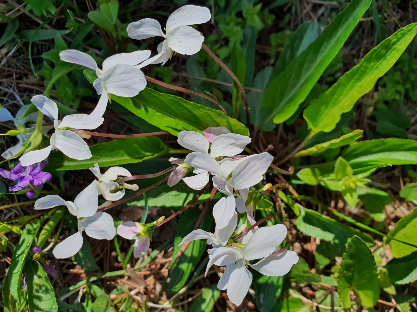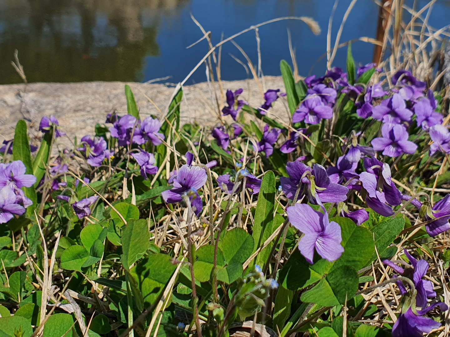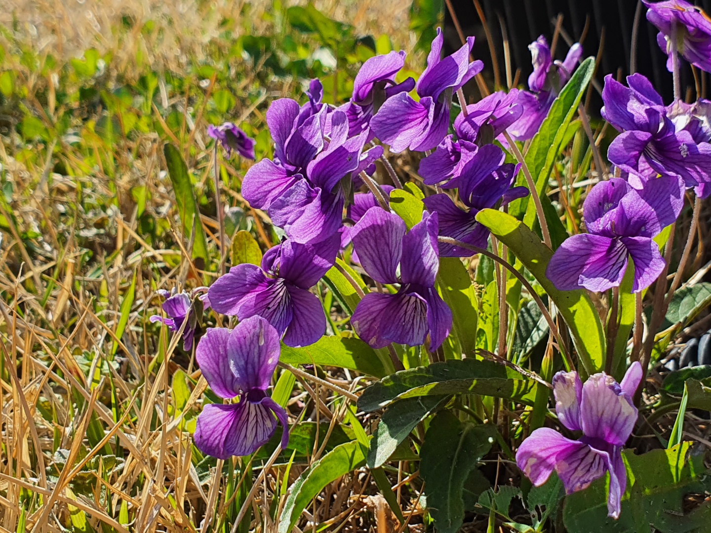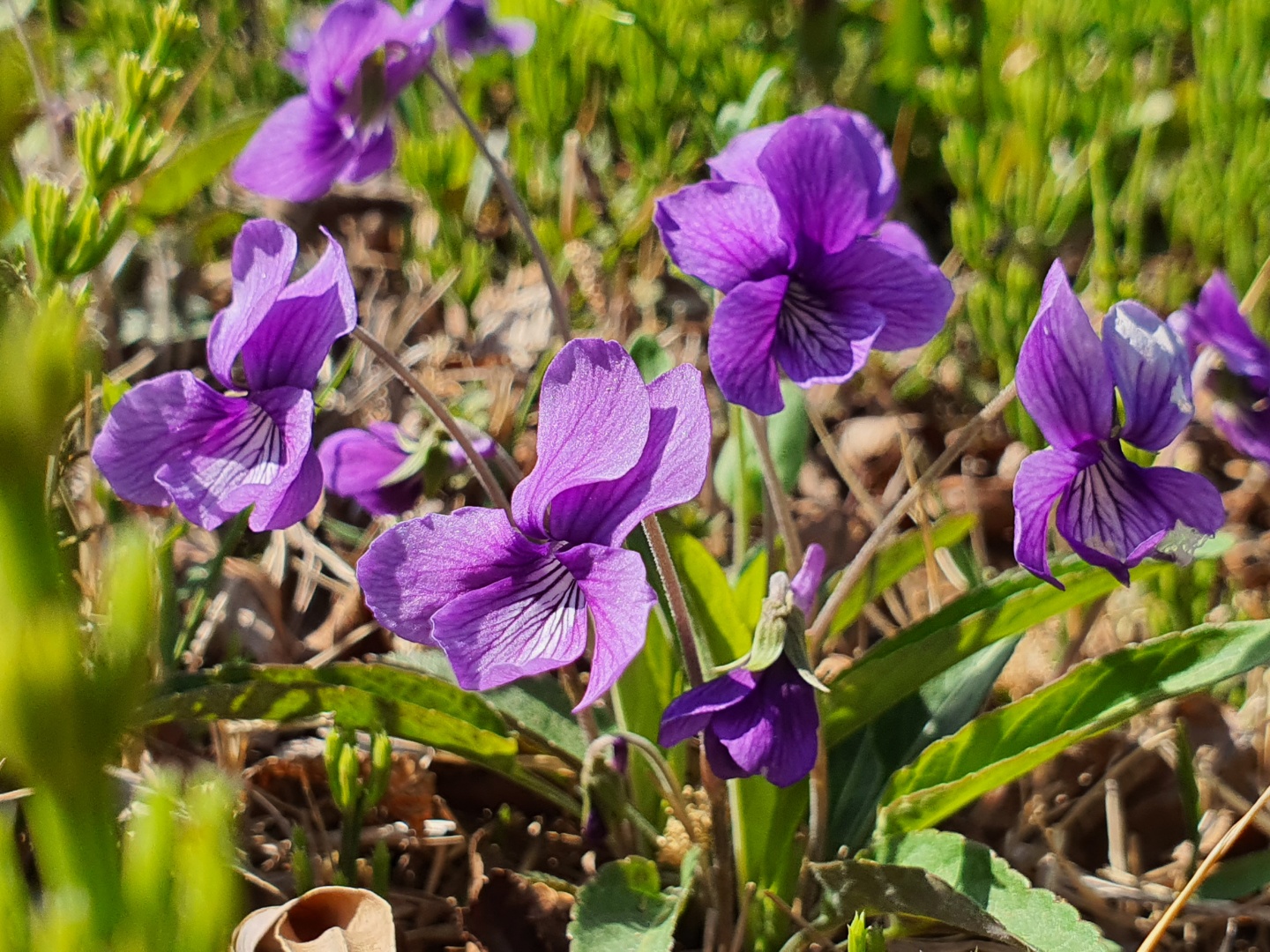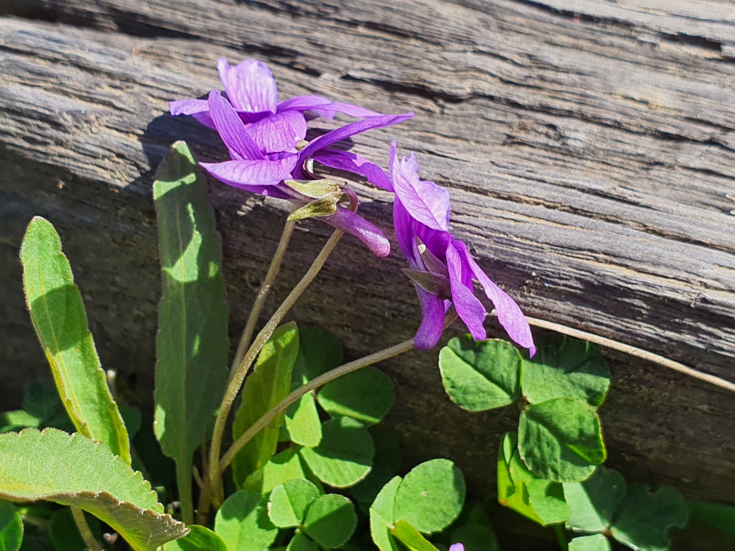 일광욕을 즐기고 있는 보라색 제비꽃.