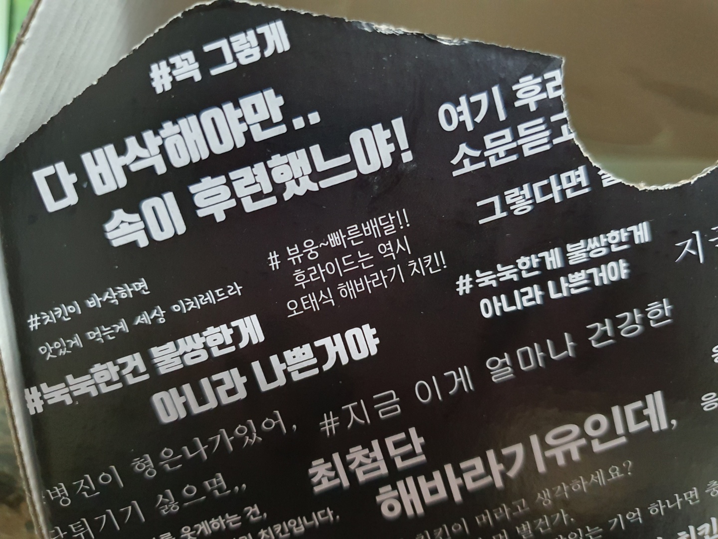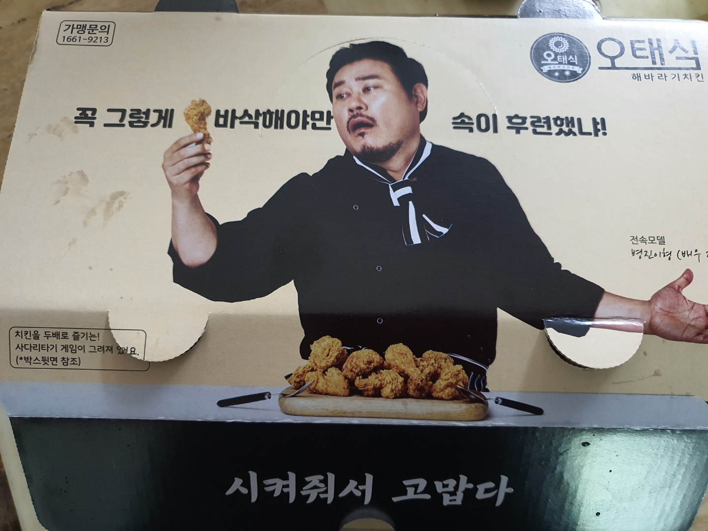 얼마나 바삭한지 보려고 오태식 후라이드 치킨으로 주문했어요.