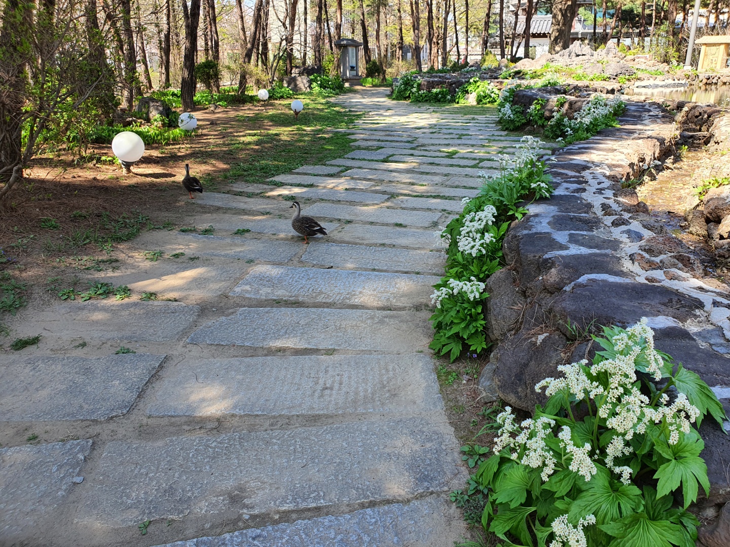 오리 두 마리가 돌단풍 구경하고 가네요. ㅎㅎ