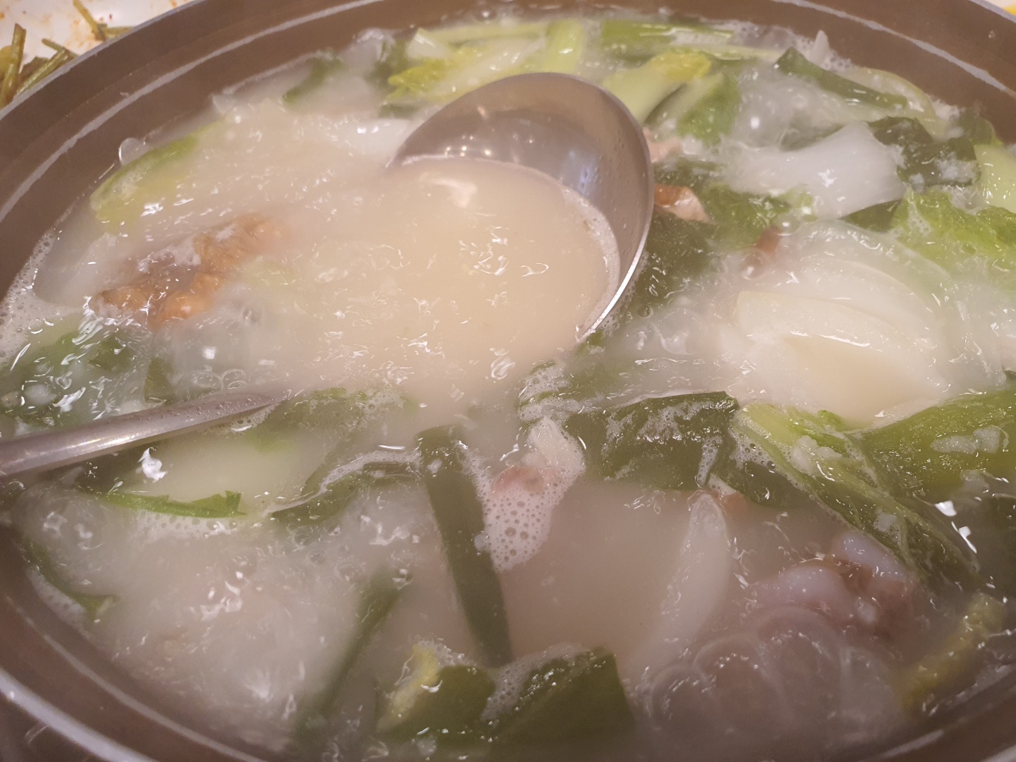 감자수제비나 칼국수는 옵션인데 우리는 감자수제비 넣었어요.