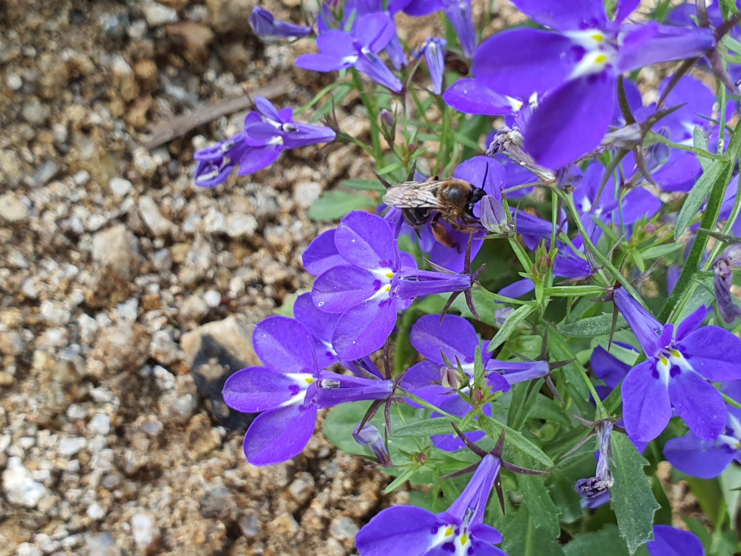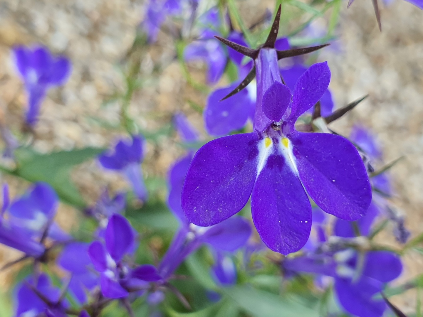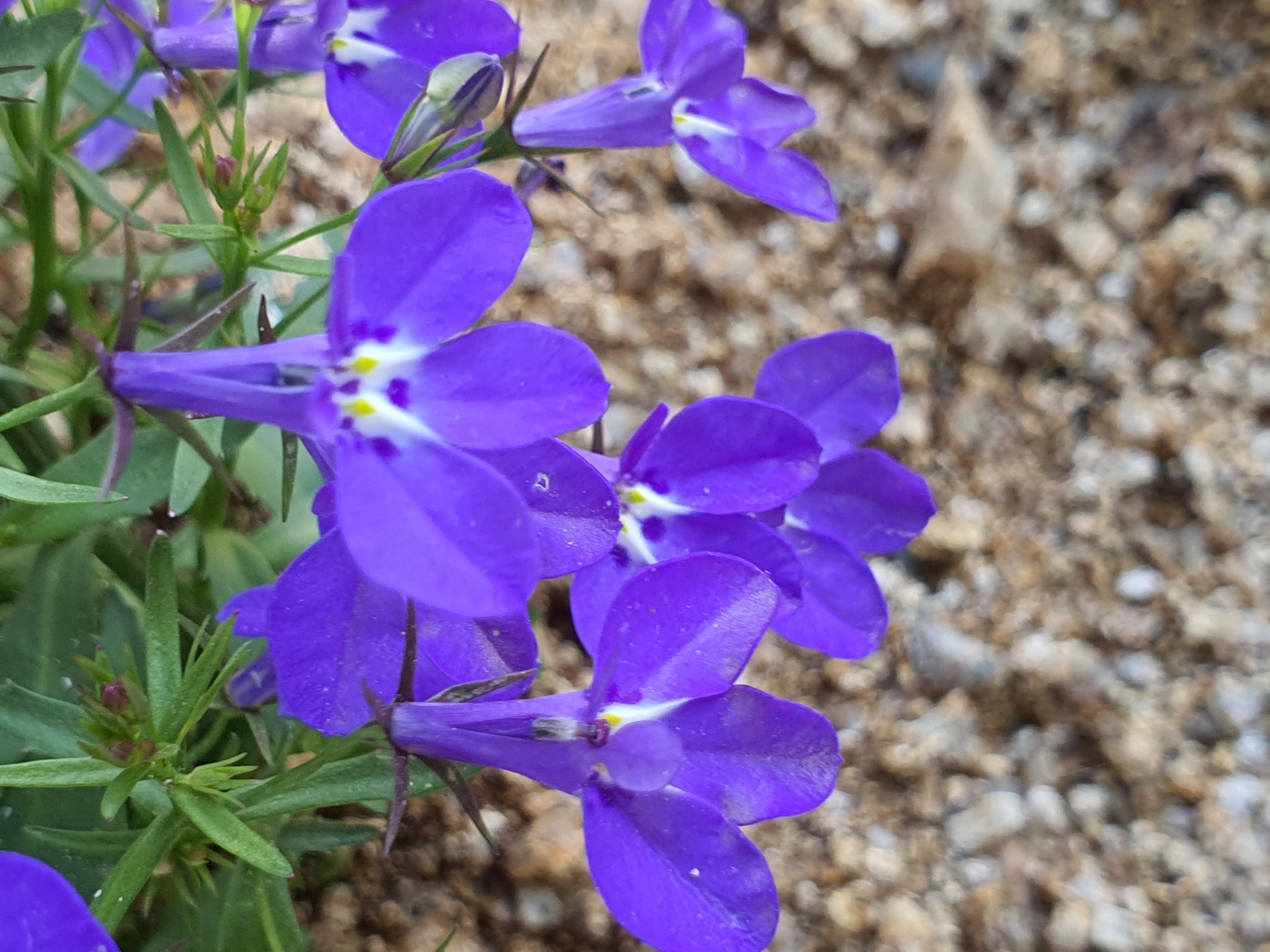 로벨리아는 꽃잎이 5장인데 아래 3장의 꽃잎이 위의 2장보다 더 큰게 특징이어요.