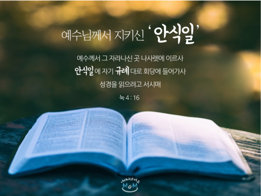 예수님께서 이 땅에 오셔서 세워주신 규례 중에는 안식일이 있습니다. 예수님께서는 안식일을 친히 규례로써 본보여 주셨습니다.