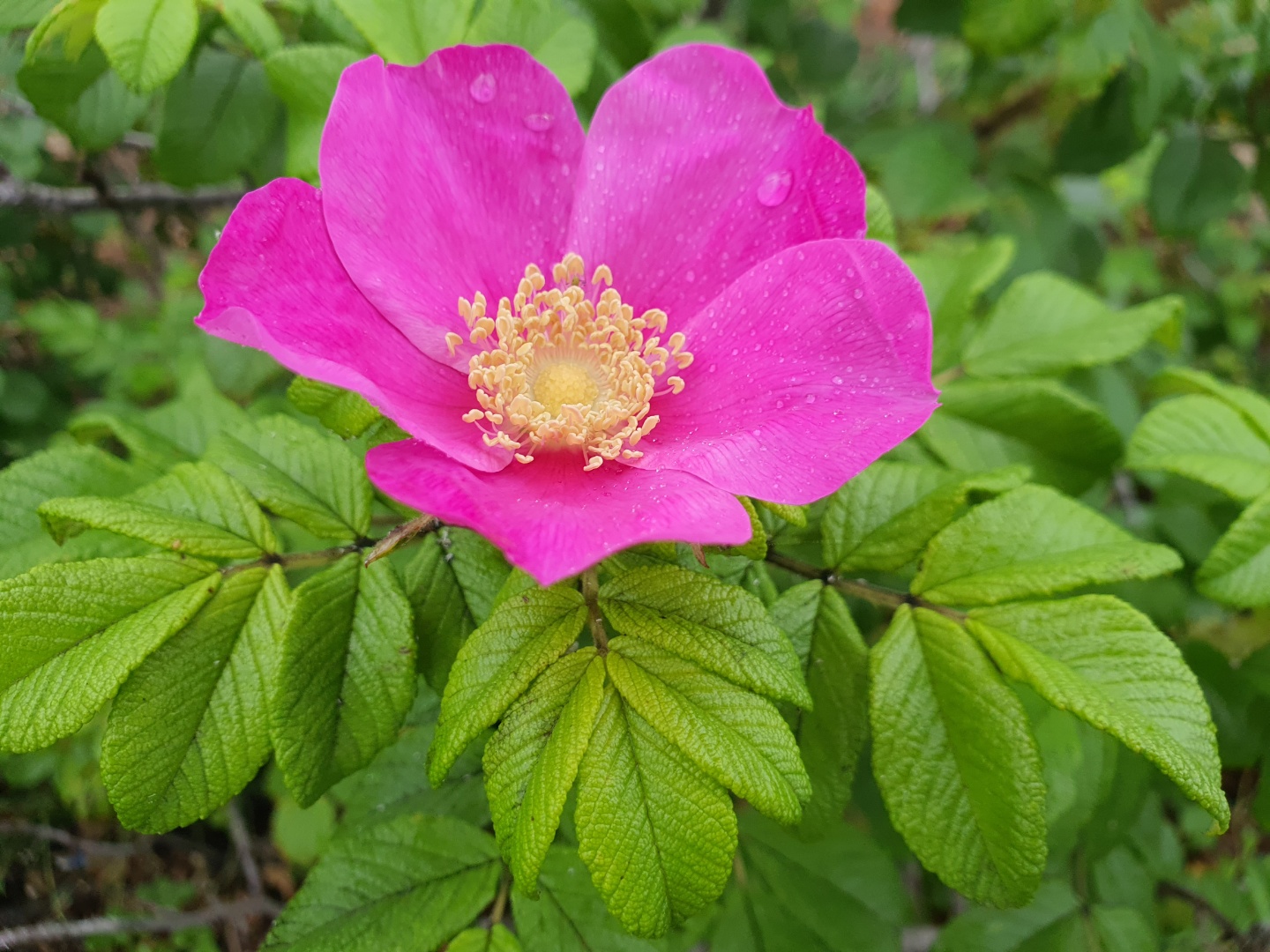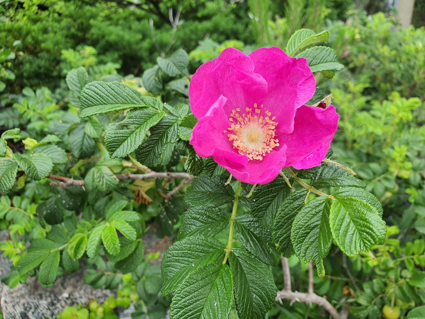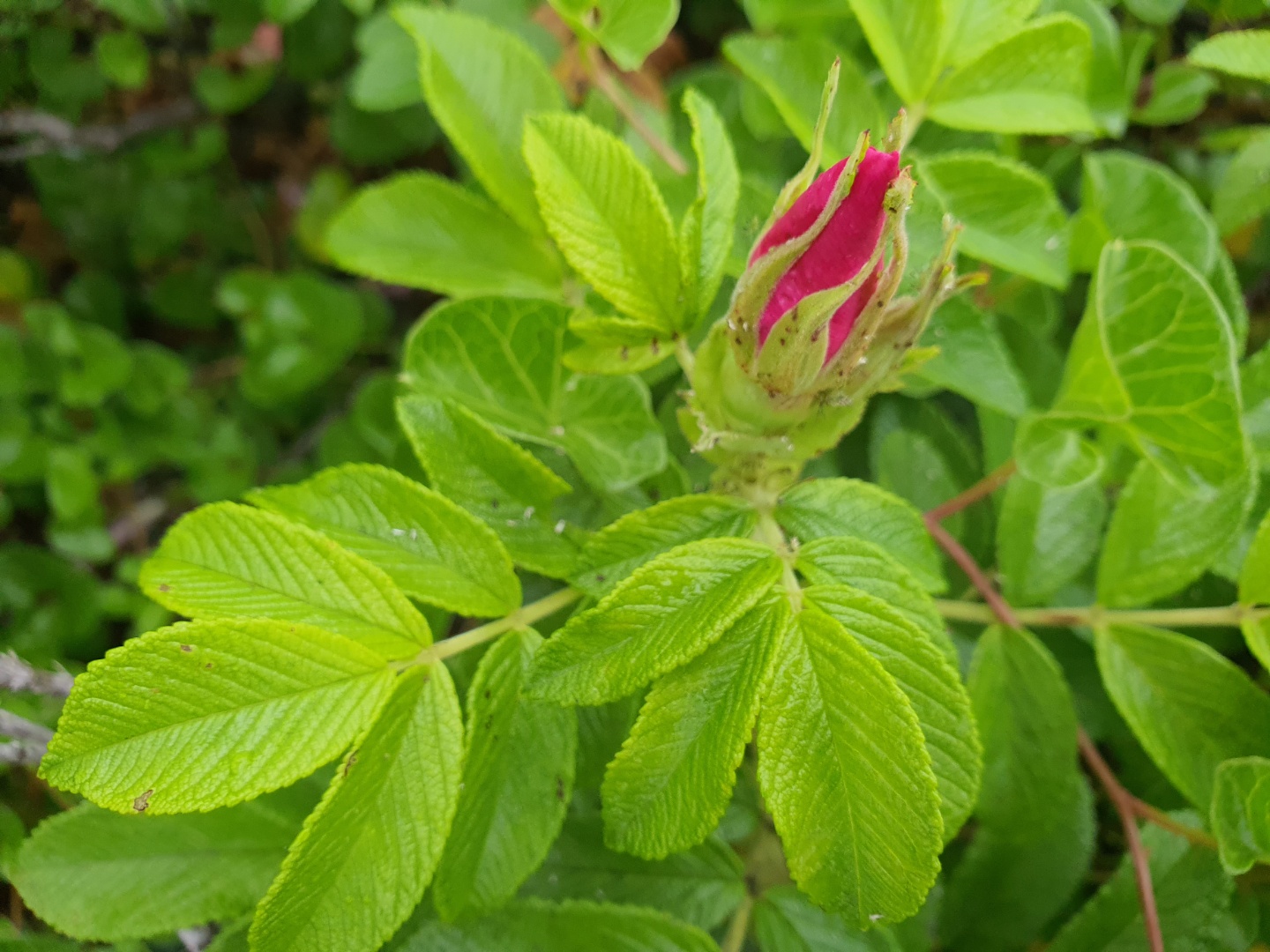 뚜렷한 결을 지닌 진초록색 해당화 잎과