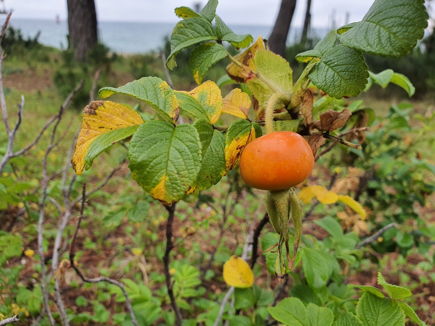 빠알갛게 익어가는 해당화 열매여요.
