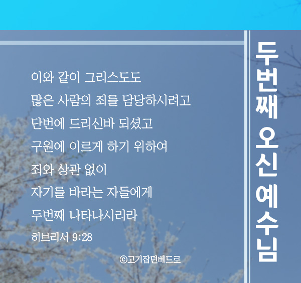 성경은 예수님께서 두 번째 오시기로 예언이 되어 있는데, 두번째 오신다는 것은 또 다시 사람의 모습으로 오신다는 것입니다. 이때에도 하나님의 영광을 보는 자들이 있고, 볼 수 없는 자들이 있습니다. 구원의 진리를 바라볼 줄 알아야만 합니다. 하나님의 육신적인 여건이 구원을 주는 것이 아니기 때문입니다.