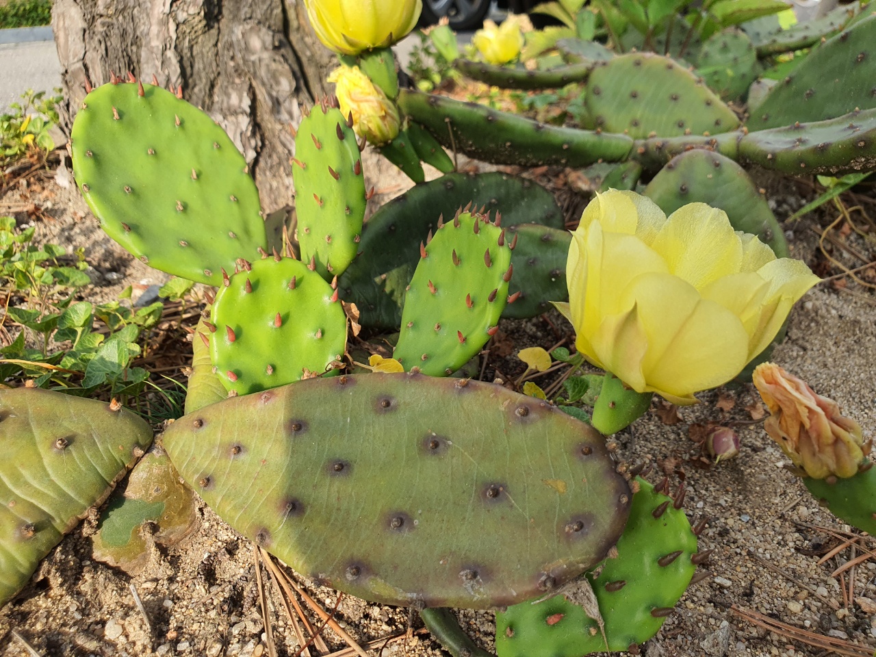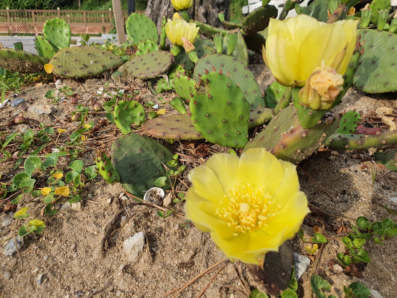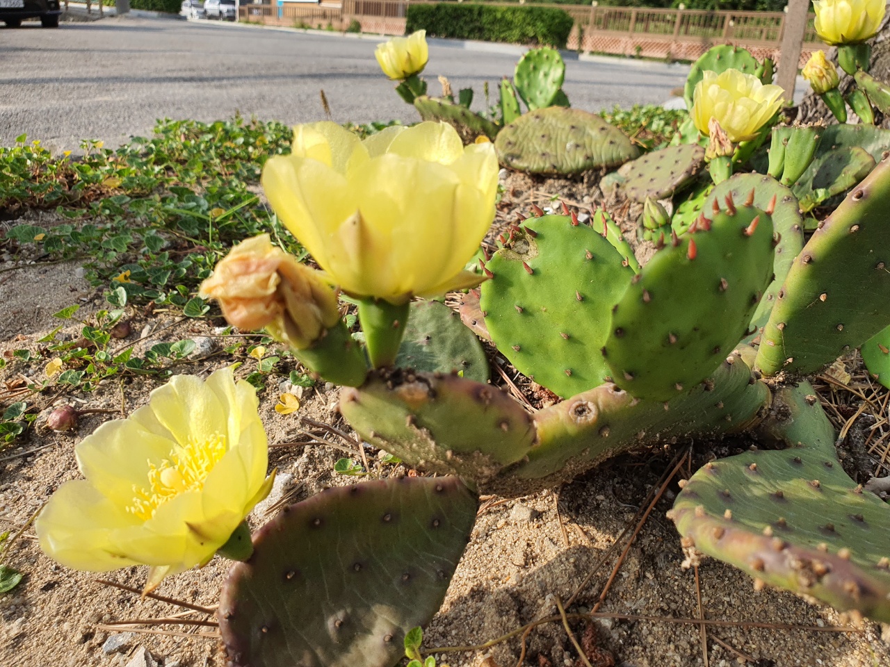 노란 자단선 선인장 꽃을 길에서 만났어요.