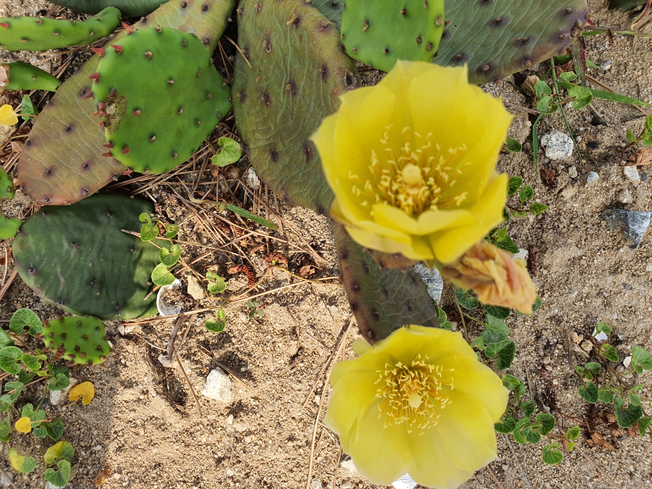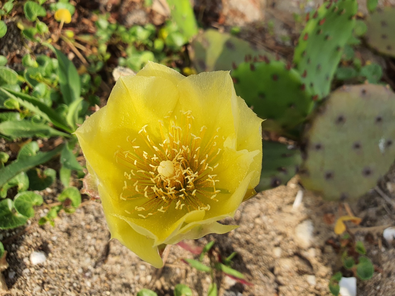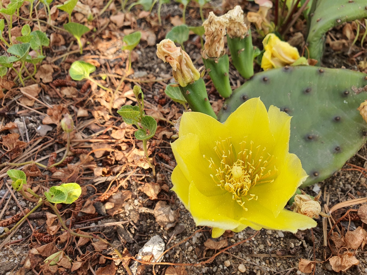 노란 자단선 선인장 꽃을 길에서 만났어요.