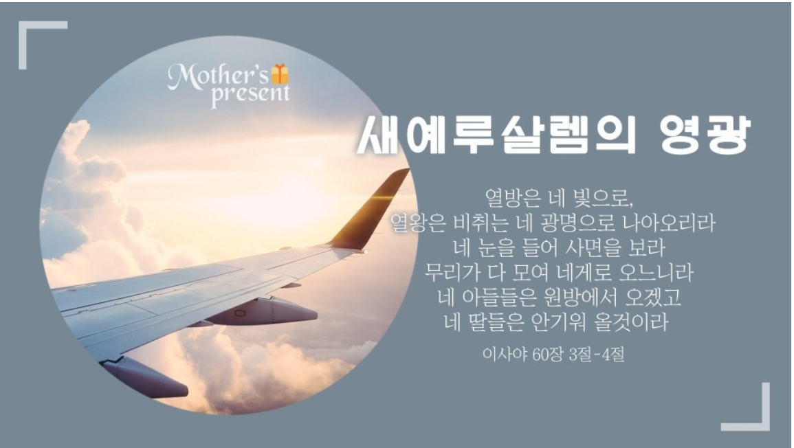오늘은 이사야 60장의 예언을 통해서 하늘 예루살렘 어머니 하나님께서 받으실 영광에 대해서 알아보겠습니다.