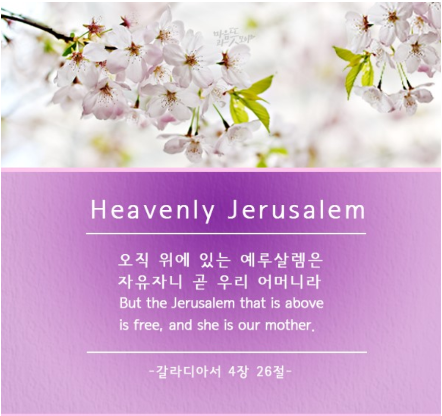 하늘 예루살렘 어머니 하나님께로 나아와 죄사함과 구원의 축복 받으시고 큰 위로 얻으시기 바랍니다.