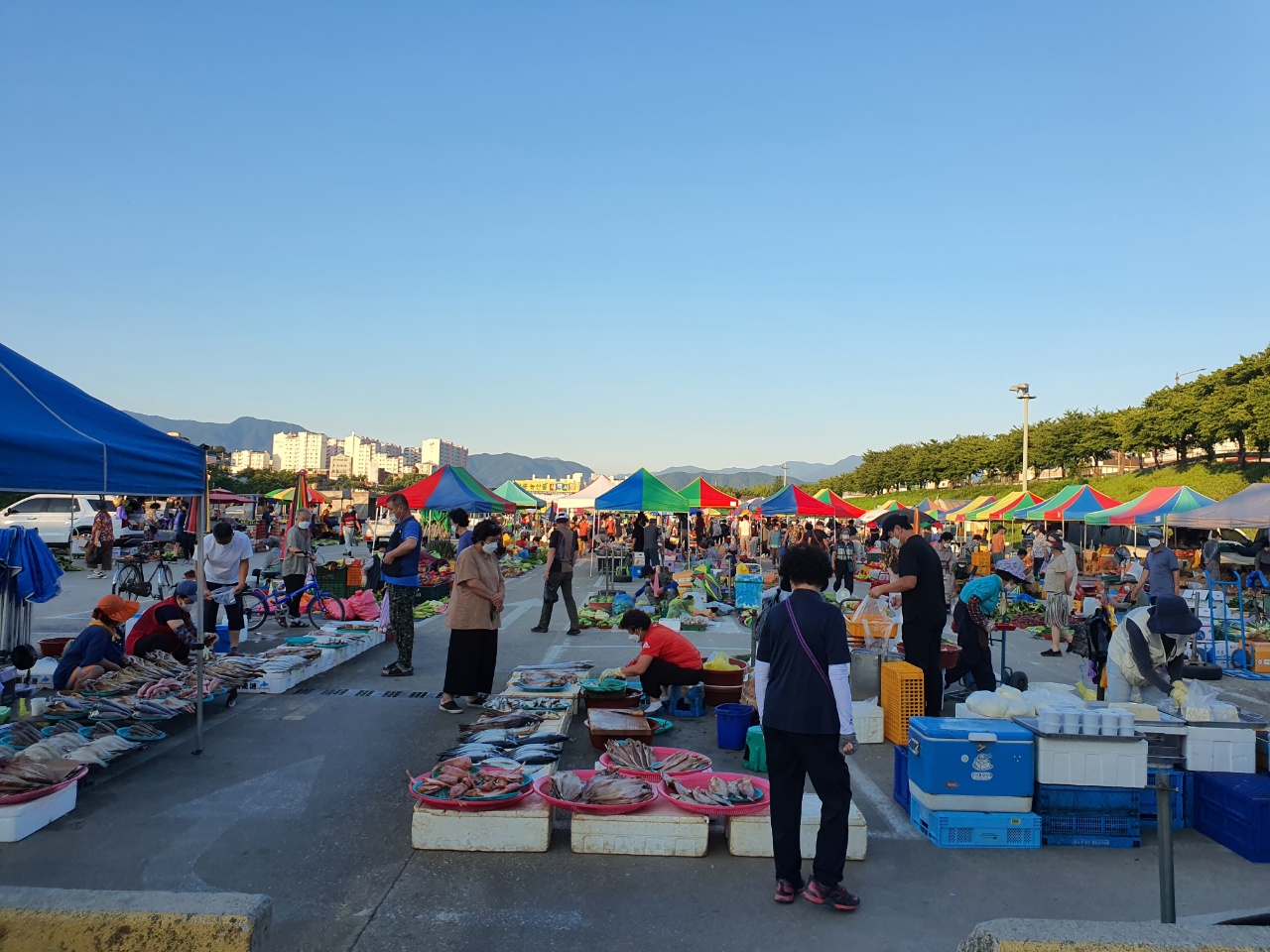 강릉 남대천 농산물 새벽시장은 매일 새벽 6시경에 열려서 오전 10시 정도에 마감한다고 해요.