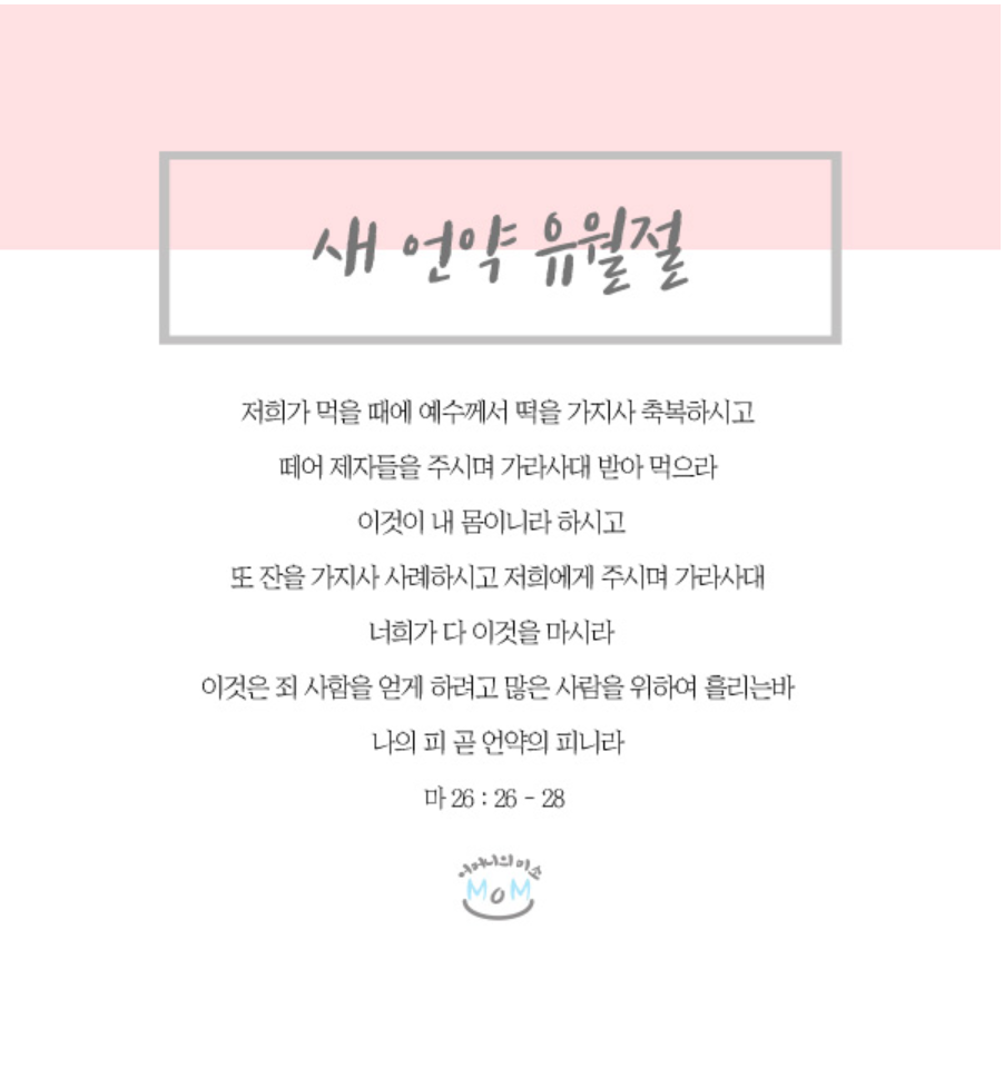 당신은 하나님의 자녀입니까? 그렇다면 새언약 유월절을 지키셨습니까? 이 질문에 스스로 답을 해보시기 바랍니다. ^^