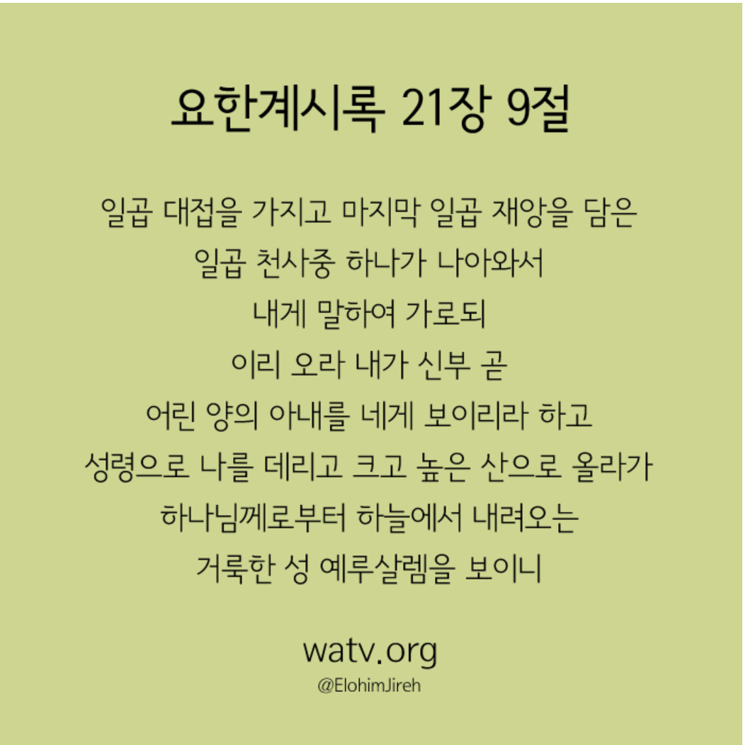 | 이사야 60장의 예언과 하늘 예루살렘 어머니 하나님 (21) | 2021.07.28 |
