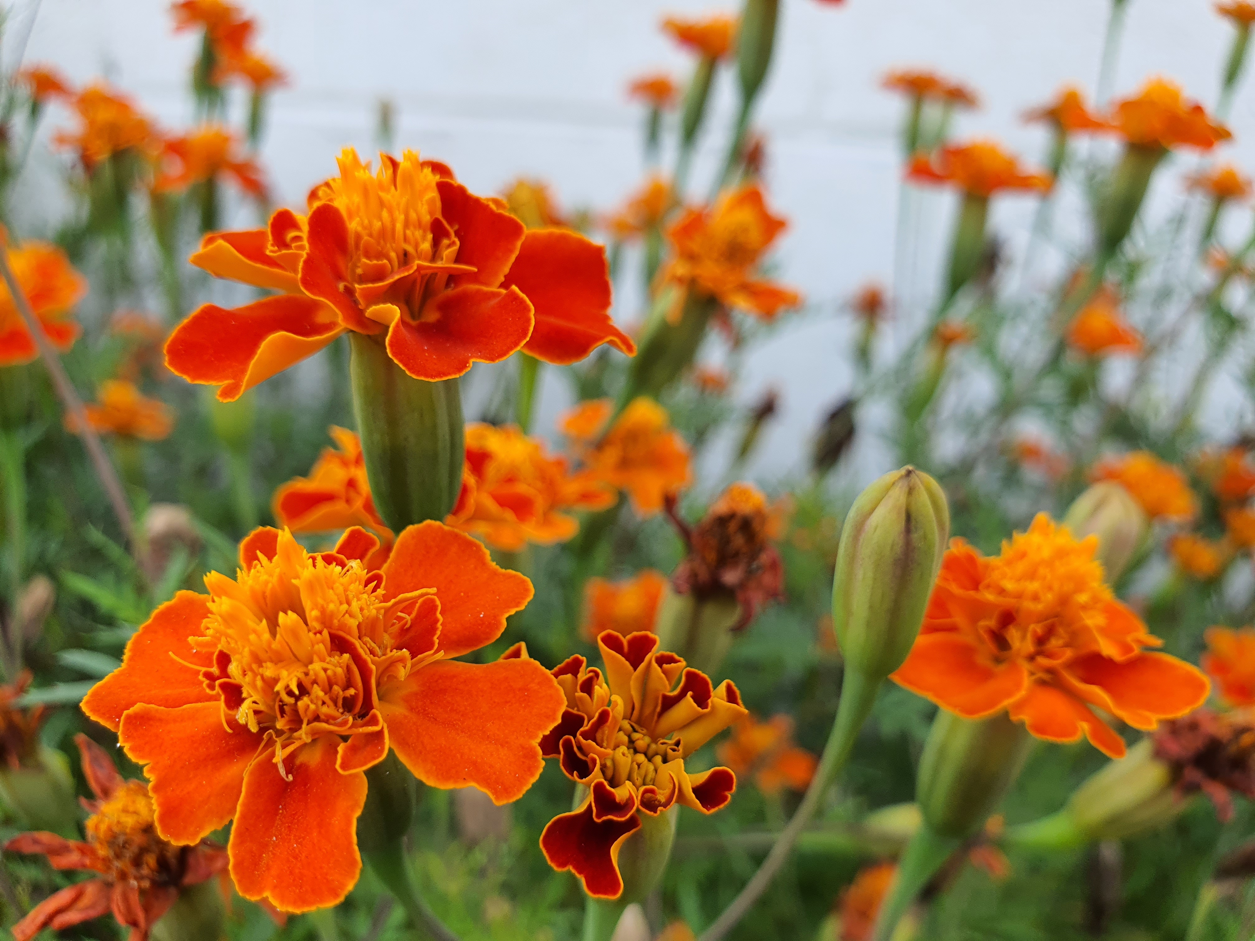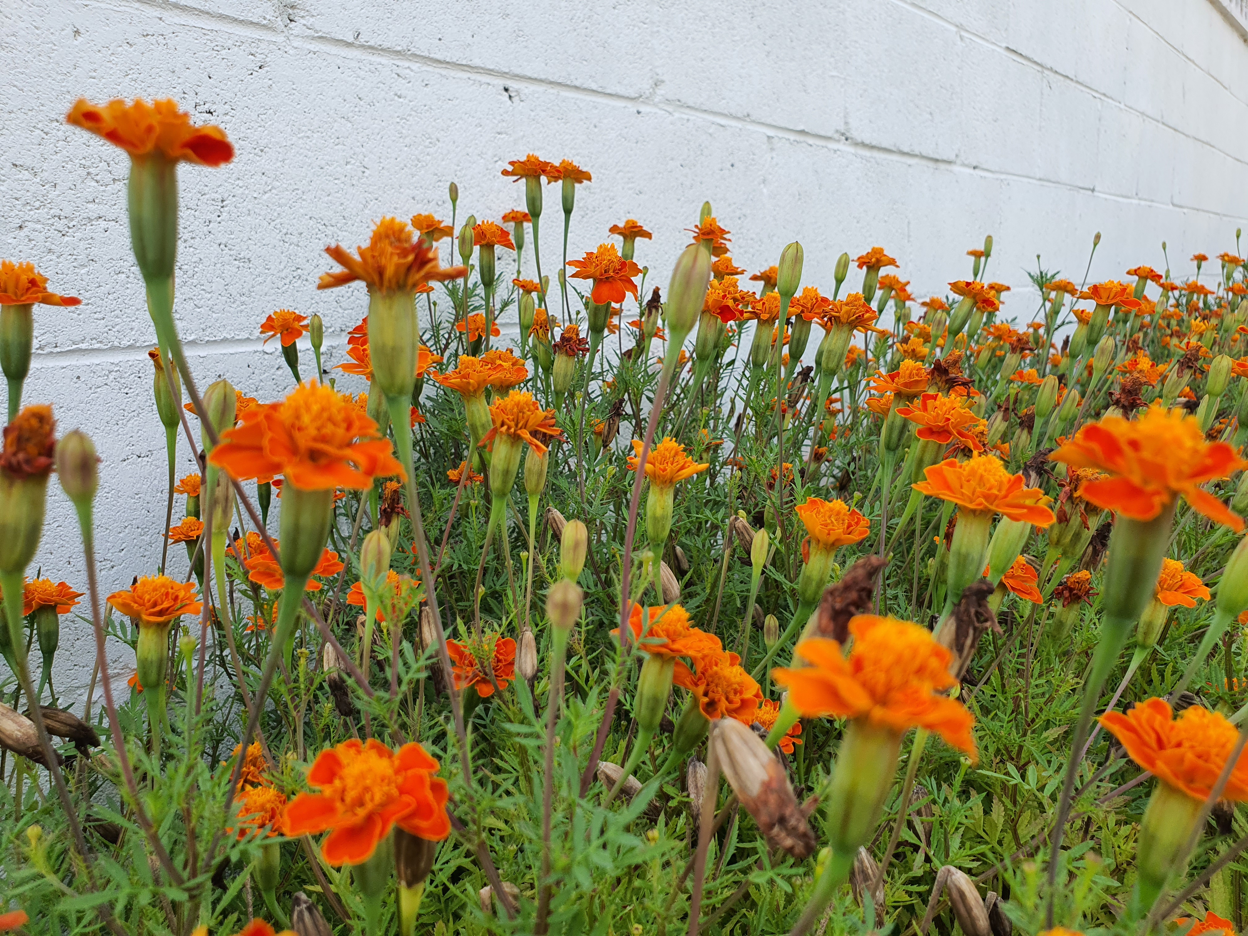 담벼락 따라 피어난 메리골드로 인해서 담장이 더 고급져 보이네요. ^^