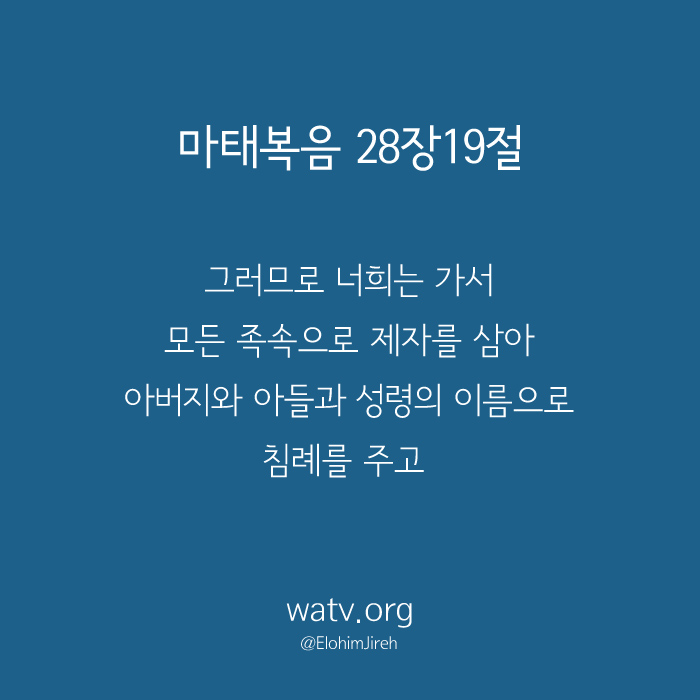 예수님께서는 어떤 이름으로 모든 족속에게 침례를 베풀라고 당부하셨습니까? '아버지와 아들과 성령의 이름'이라고 하셨습니다. 그러므로 성부의 이름, 성자의 이름, 성령의 이름이 각각 있다는 뜻 아니겠습니까?