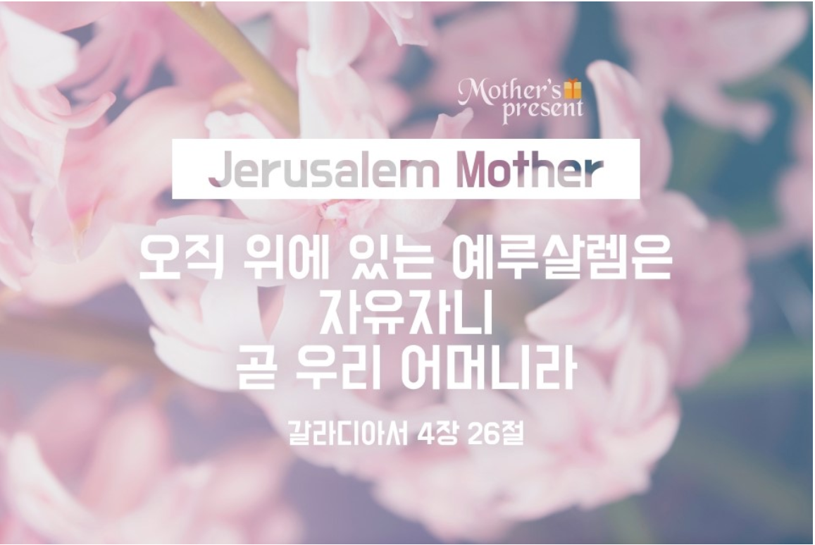 신약시대에 우리가 찾아야할 예루살렘은 바로 우리 어머니 하나님이십니다. 히브리 기자도 구원받을 '우리'라는 무리가 와 있는 곳은 시온산과 하늘의 예루살렘이라고 기록하고 있습니다.