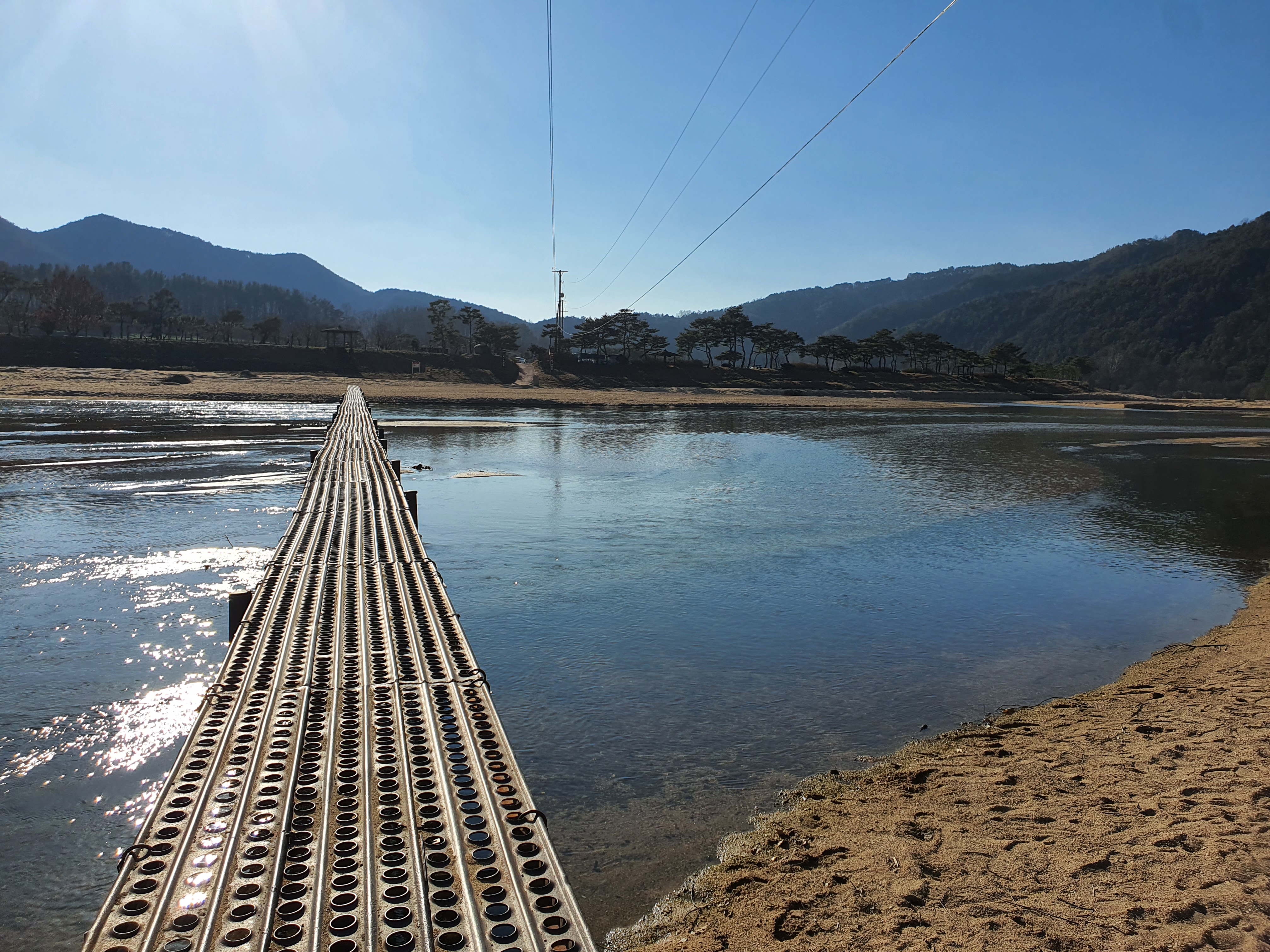 회룡포마을로 들어가려면 뿅뿅다리를 건너야 하는데