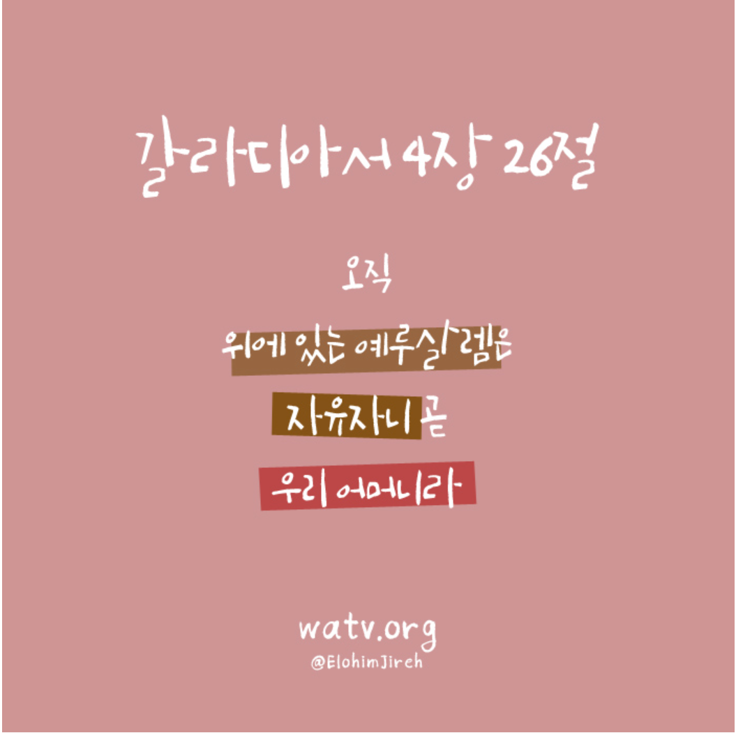 여기에서 '위'는 '하늘'입니다. 이처럼 하늘에는 우리 아버지 하나님도 계시고 우리 어머니 하나님도 계십니다. 하늘에 계셨던 어머니 하나님께서 이 마지막 시대에 이 땅에 친히 오시어 인류에게 생명수를 허락하시는 것이 성경의 마지막 장면입니다.