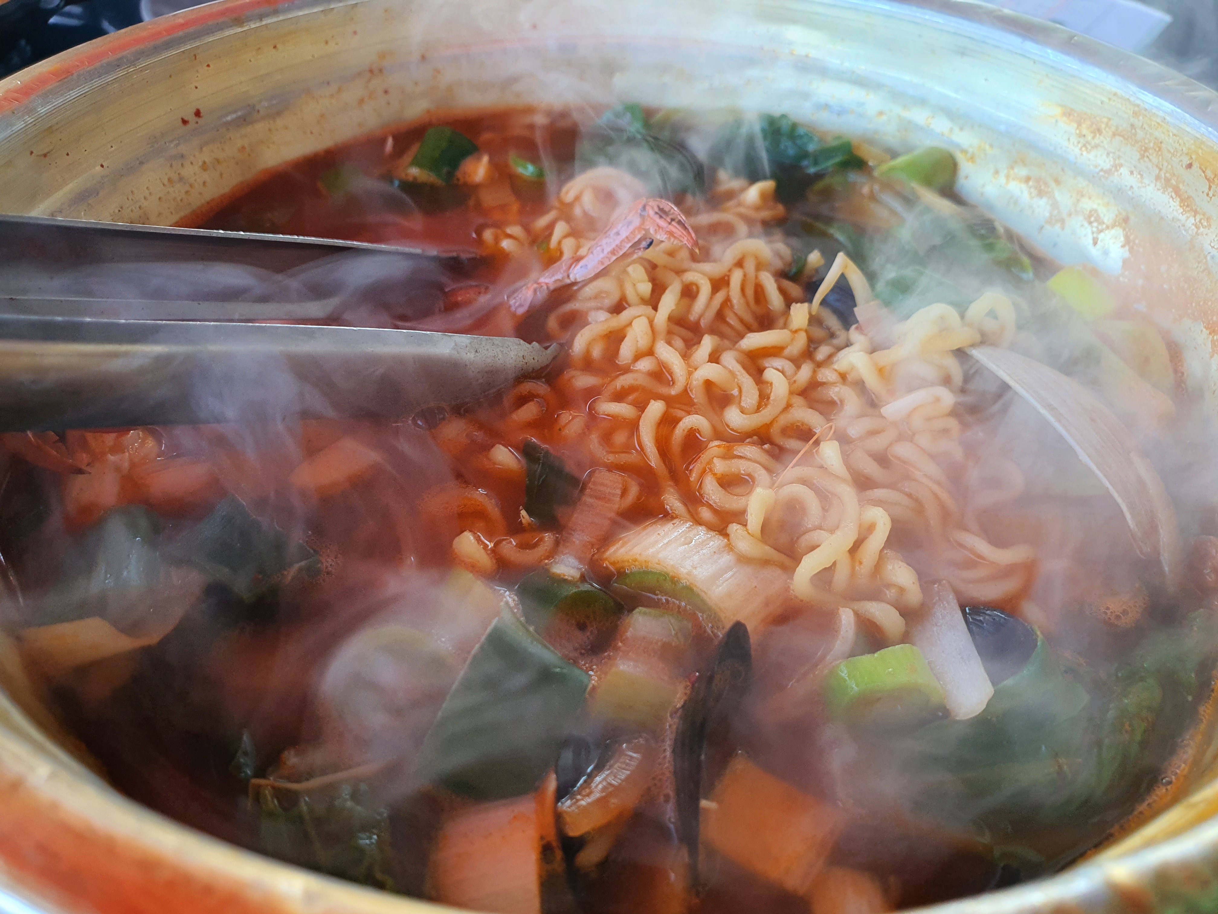 설악산 내려와서 푸짐한 양푼이 해물 라면을 먹었어요. ^^
