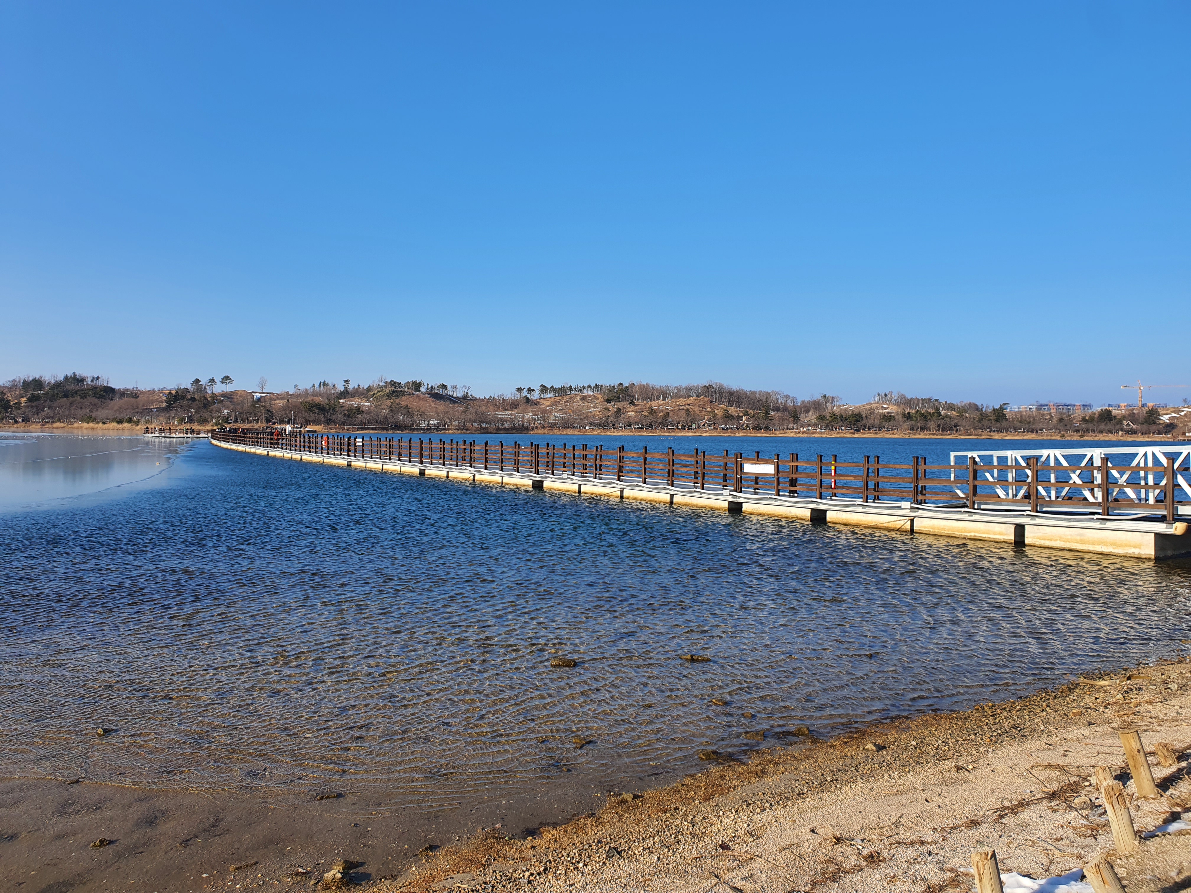 영랑호가 꽤 넓어서 한바퀴 걷기엔 벅찬 거리던데 중간에 부교를 설치했네요.