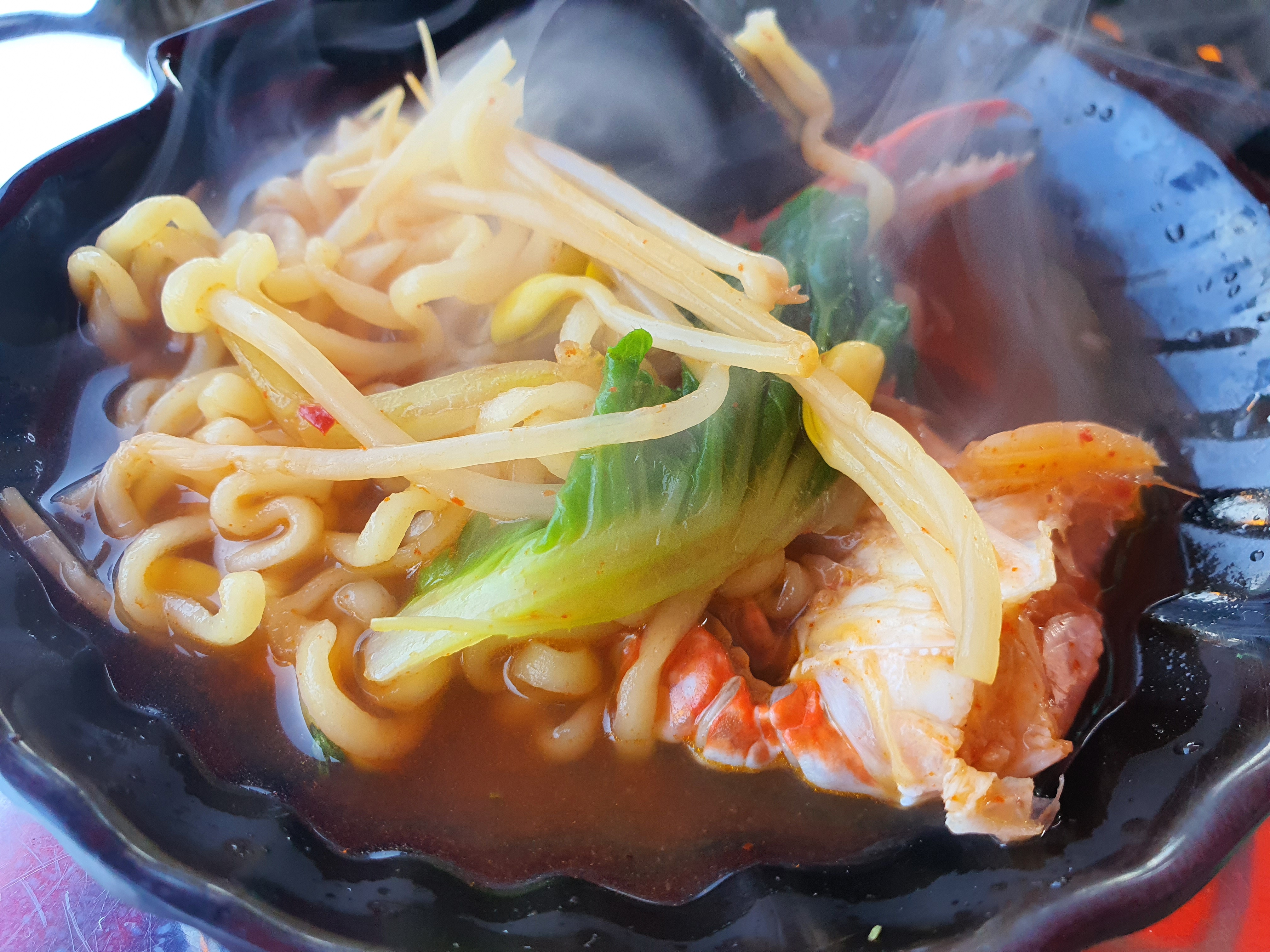 각종 해물에 콩나물이 들어가 시원하고 개운한 명품 라면이어요.