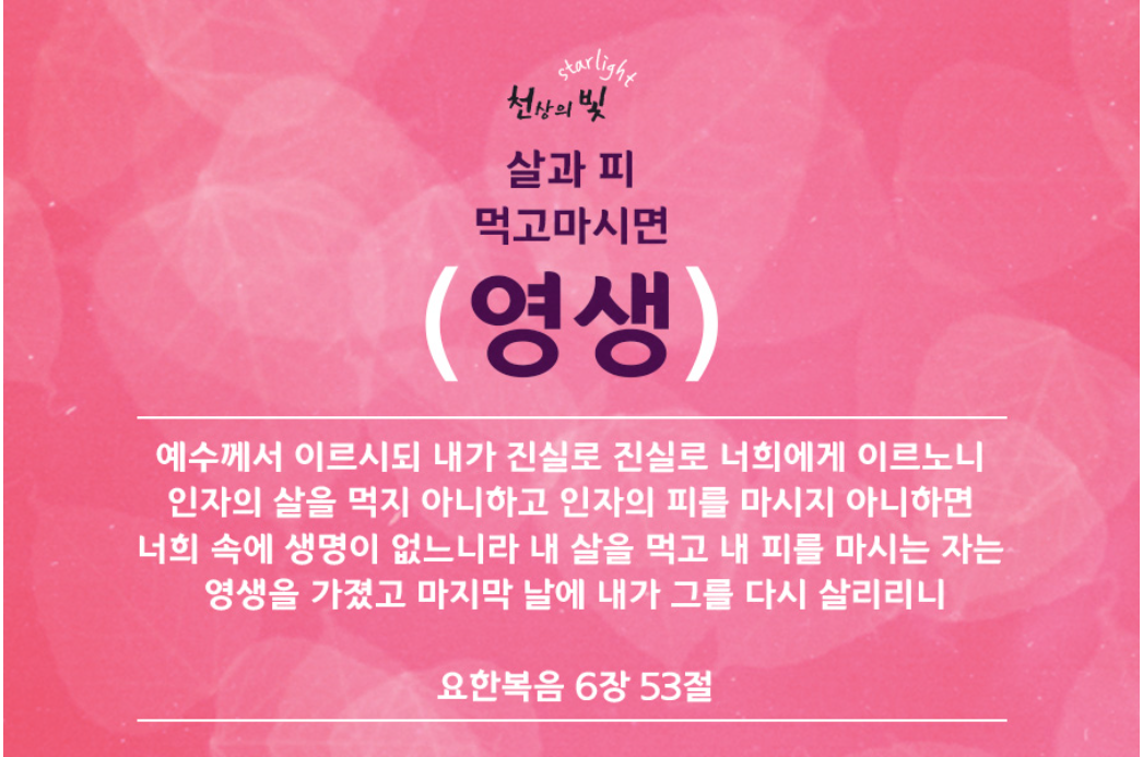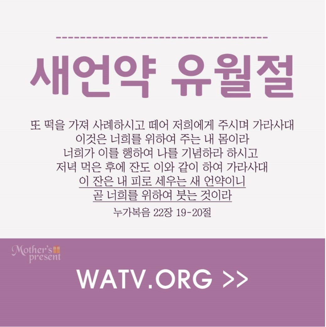 새언약 유월절은 하나님께서 친히 세우신 하나님의 절기로 하나님의 자녀가 되는 권세를 얻고 천국에서 영생복락을 누릴수 있는 귀한 절기입니다.