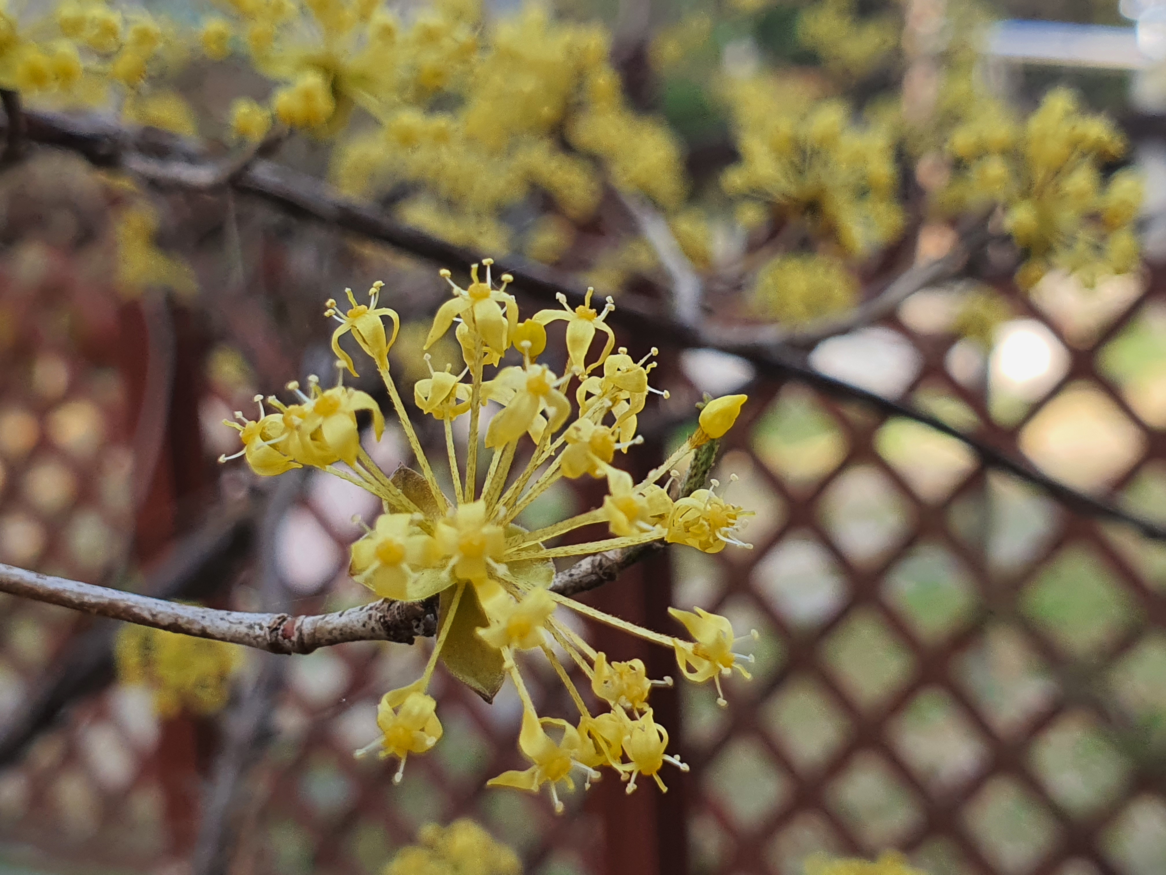 산수유꽃은 멀리서 보면 수수해 보이는데