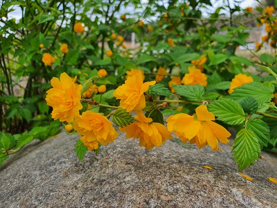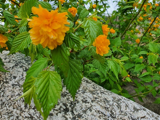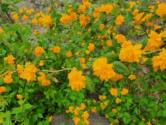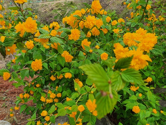 죽단화라고도 하고 겹황매화라고도 하는 어여쁜 봄꽃이어요.