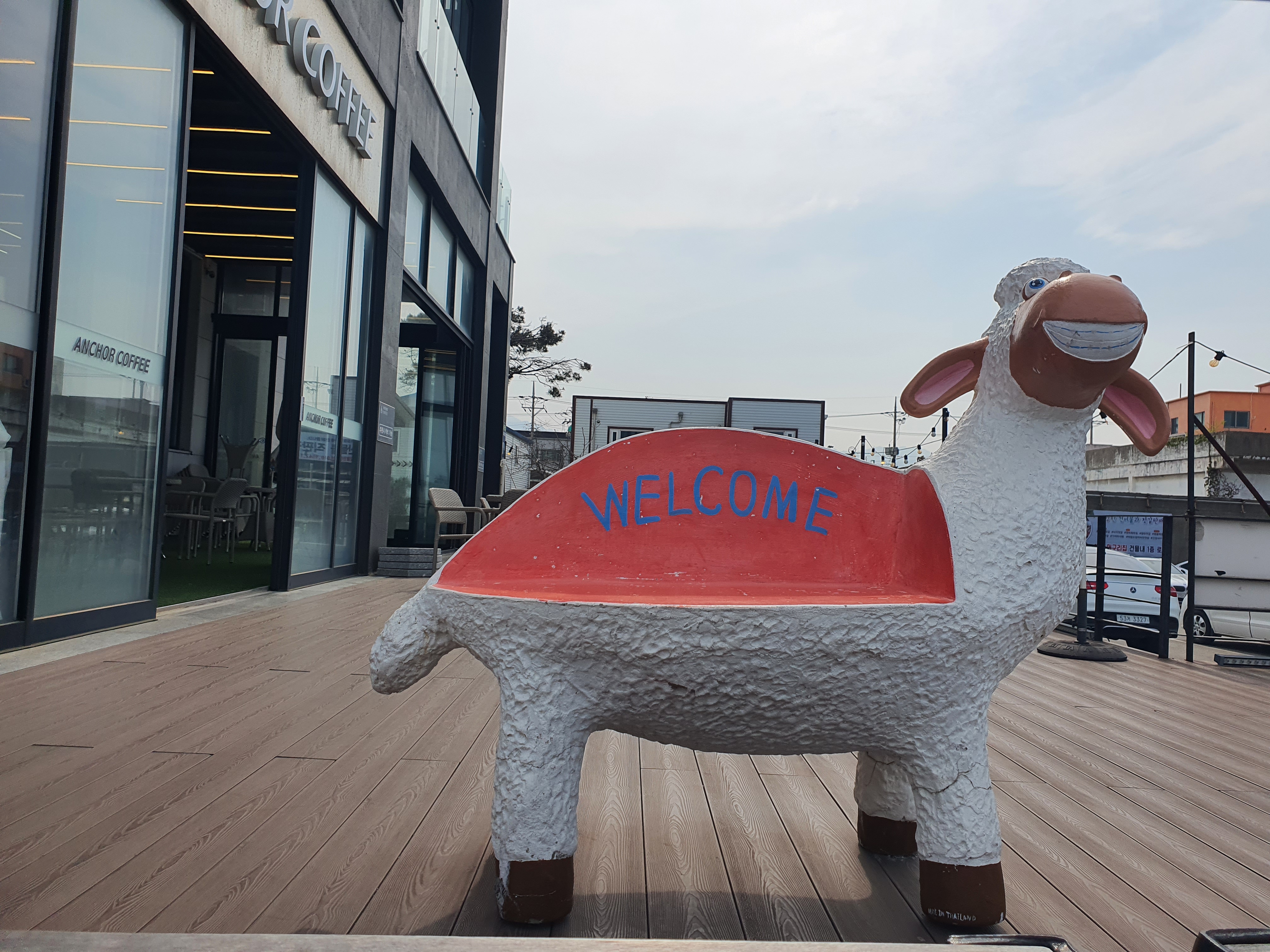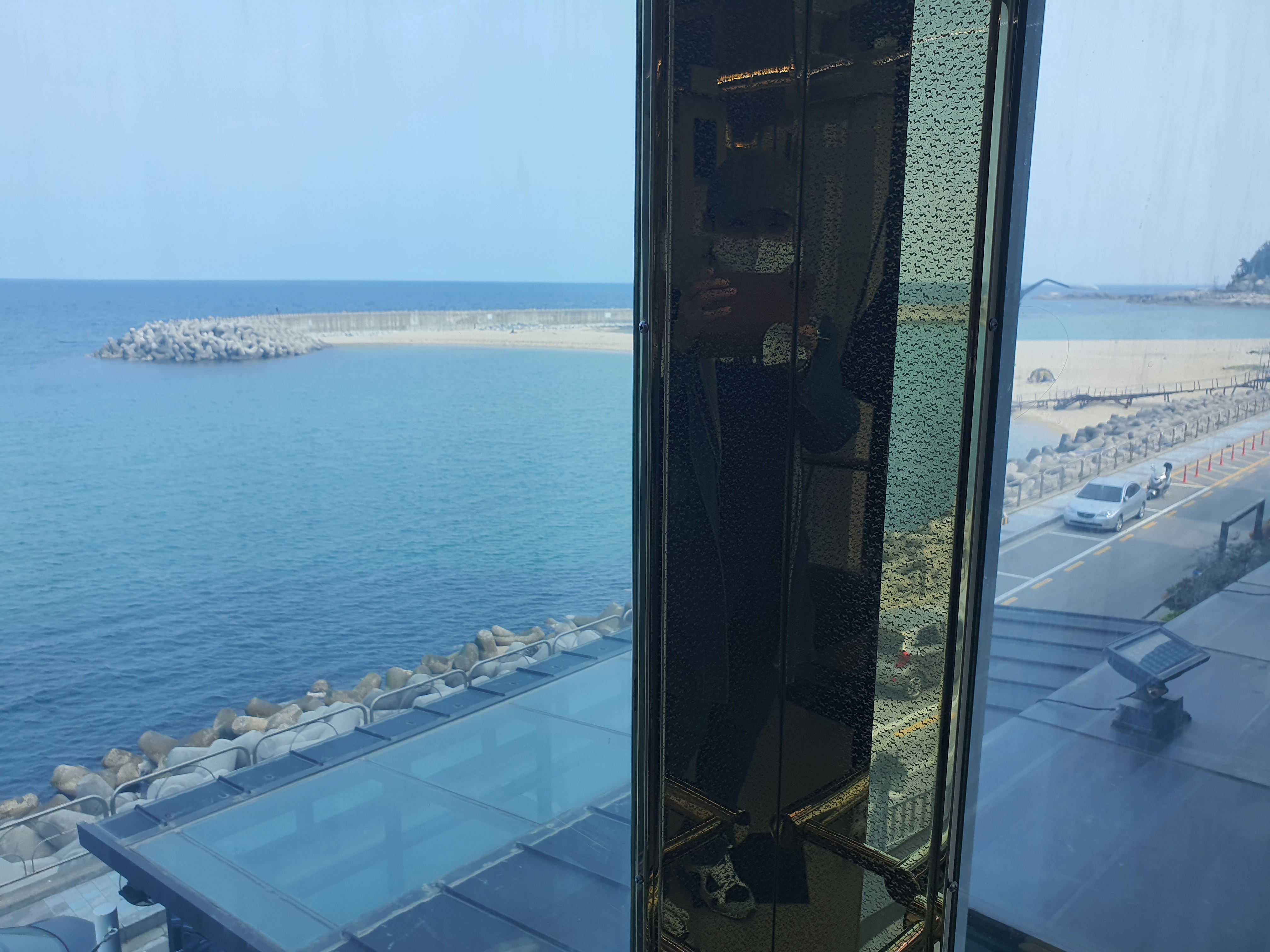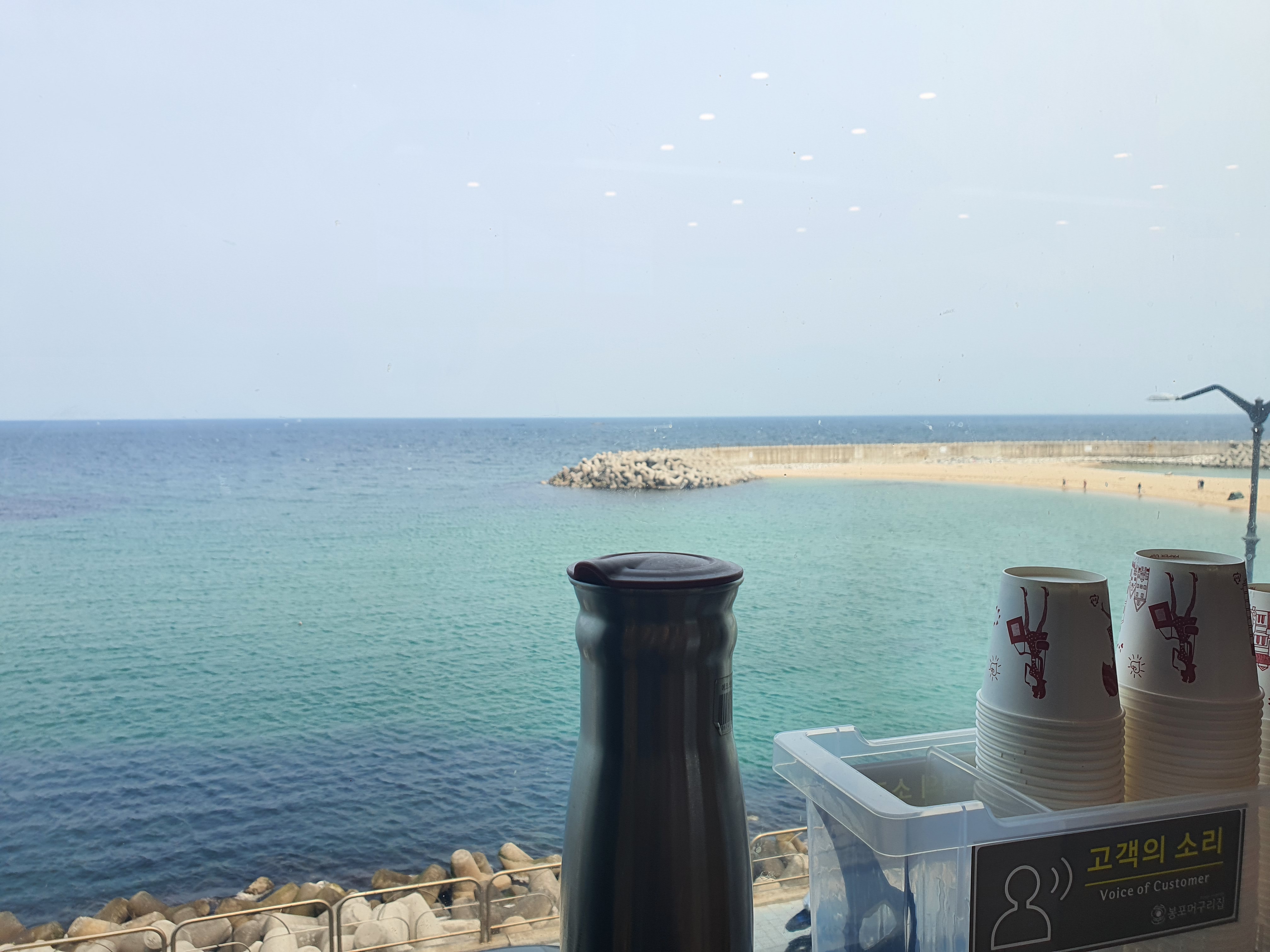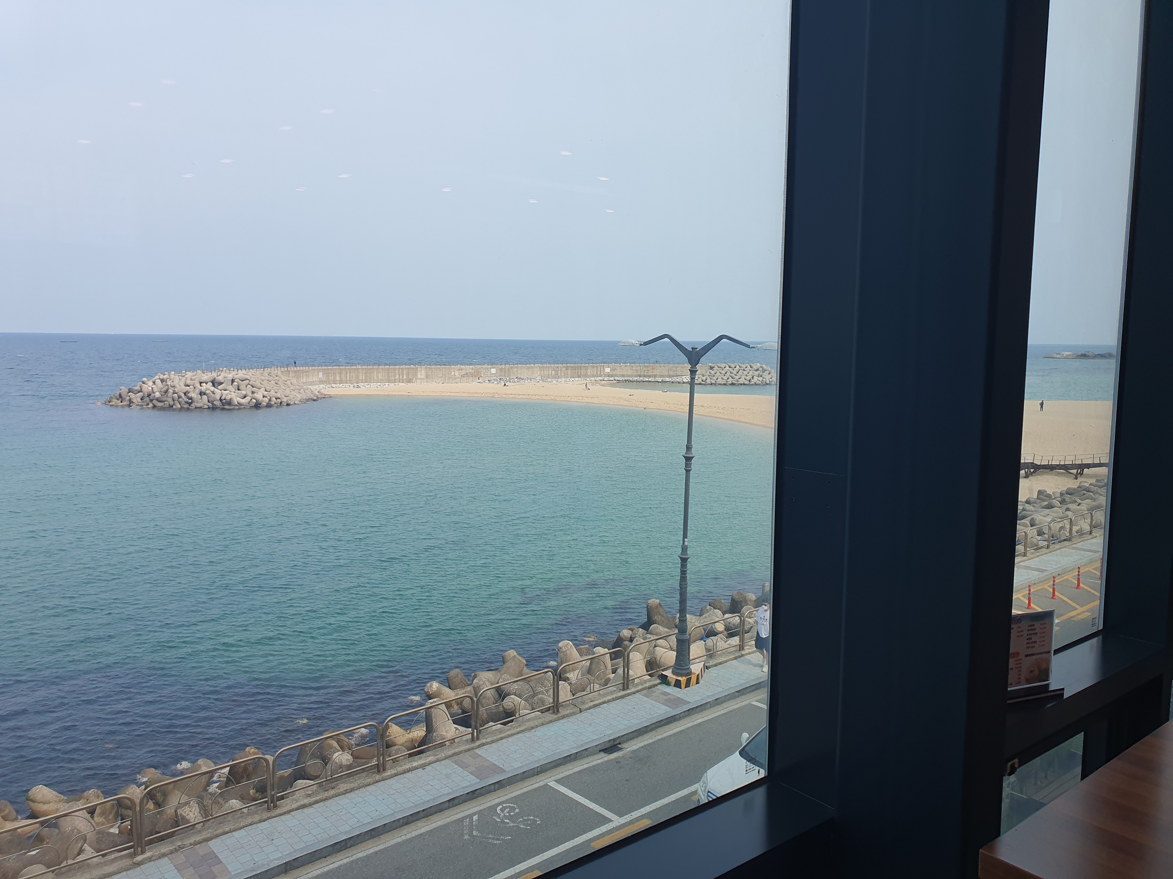 물회 다 먹고 1층으로 내려와서 커피 한 잔 하며 바다 한 번 더 보고...