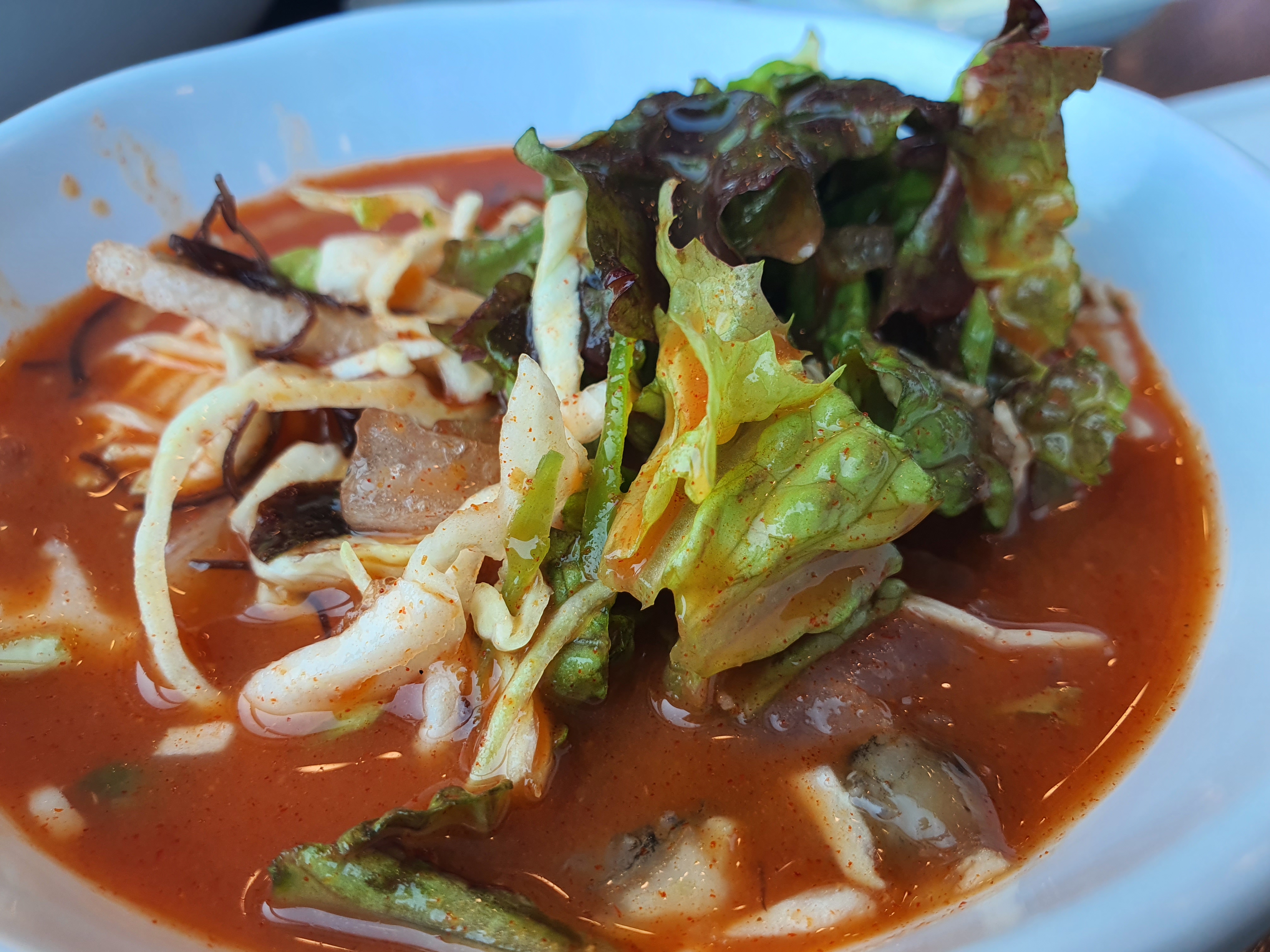 국수를 그릇에 담고 물회를 골고루 섞어서 부어서 먹으면 되어요.