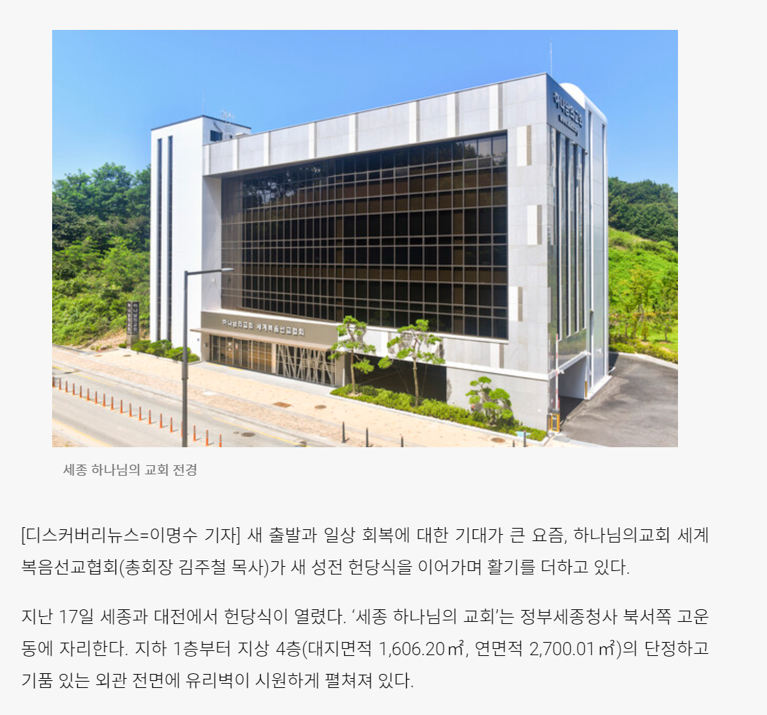 아래는 세종과 대전에 하나님의 교회 헌당식 소식에 관한 기사입니다.