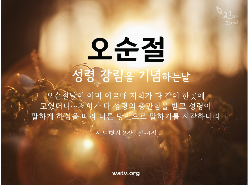 오순절은 하나님께서 성령을 충만히 내려주신다고 약속하신 귀한 절기입니다. 초대교회 전도의 부흥도 오순절 성령이 임한 후에 일어났습니다. 이 시대도 마찬가지입니다. 오늘날 하나님의 교회에 폭발적인 전도의 부흥이 일어나는 이유도 바로 오순절 성령이 임했기 때문입니다.
