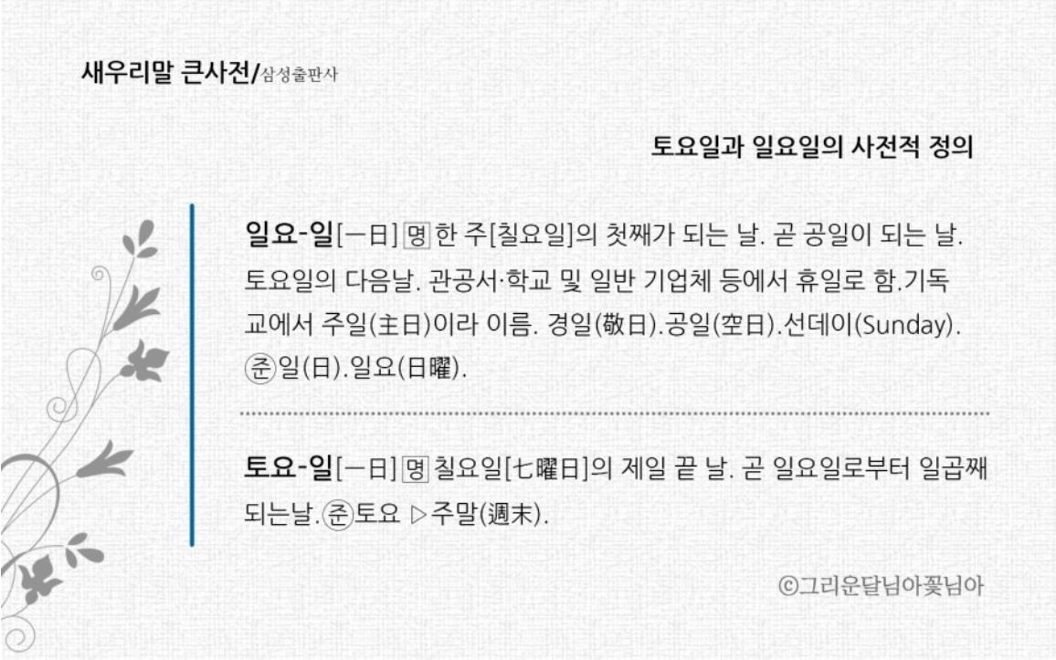 국어사전이 증거하는 일곱째 날