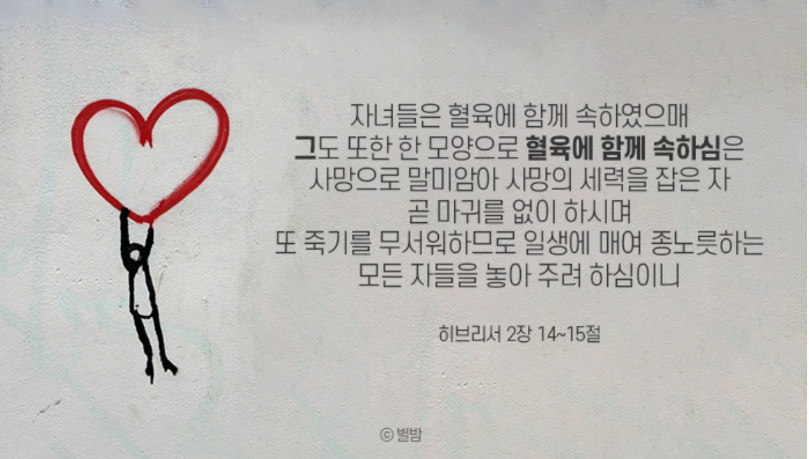 그렇다면 초림 예수님이나 재림 예수님께서는 왜 우리와 동일한 혈육을 입으시고 이 땅에 오시는 것일까요? 그 이유는 우리를 사망의 세력을 잡은 자 즉 마귀의 손아귀에서 해방시켜 주시기 위함입니다.