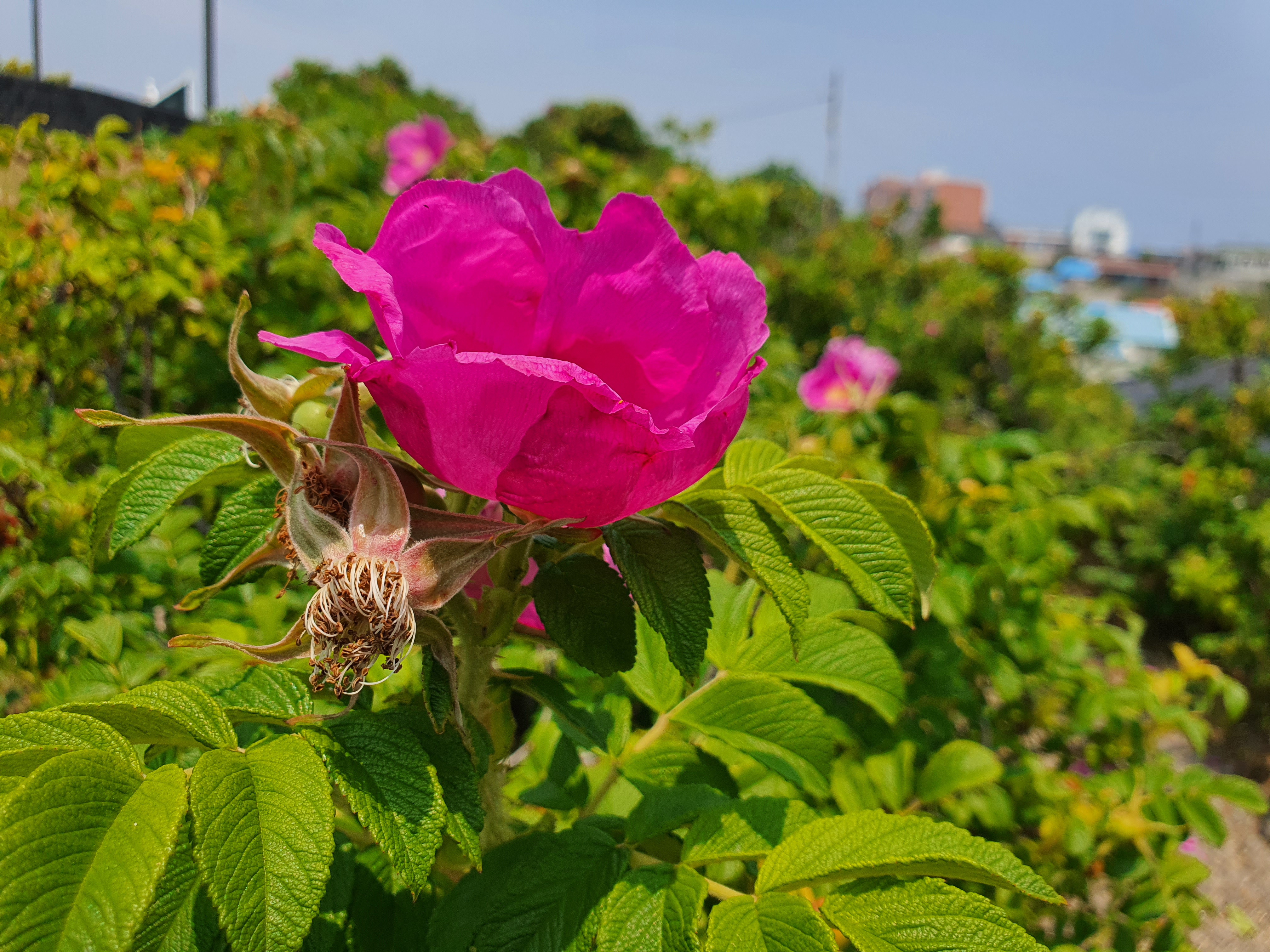 해당화는 잎도 너무 이뻐요. 선명한 주름이 매우 인상적이어요.