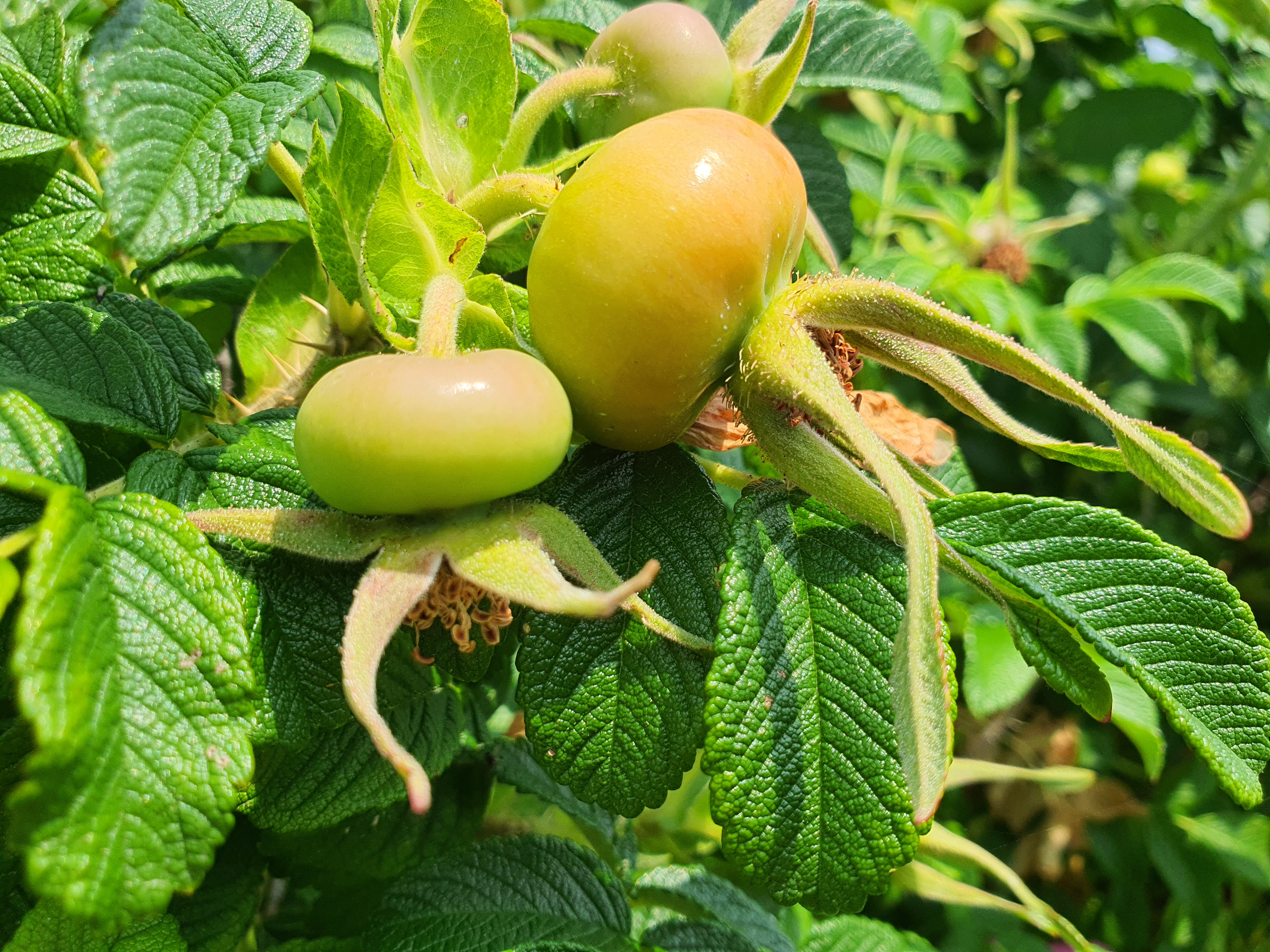 6월의 해당화 열매 모습이어요. 빨갛게 익어가는 중입니다. 완전히 다 익으면 빛깔이 얼마나 이쁜지 모른답니다. ^^