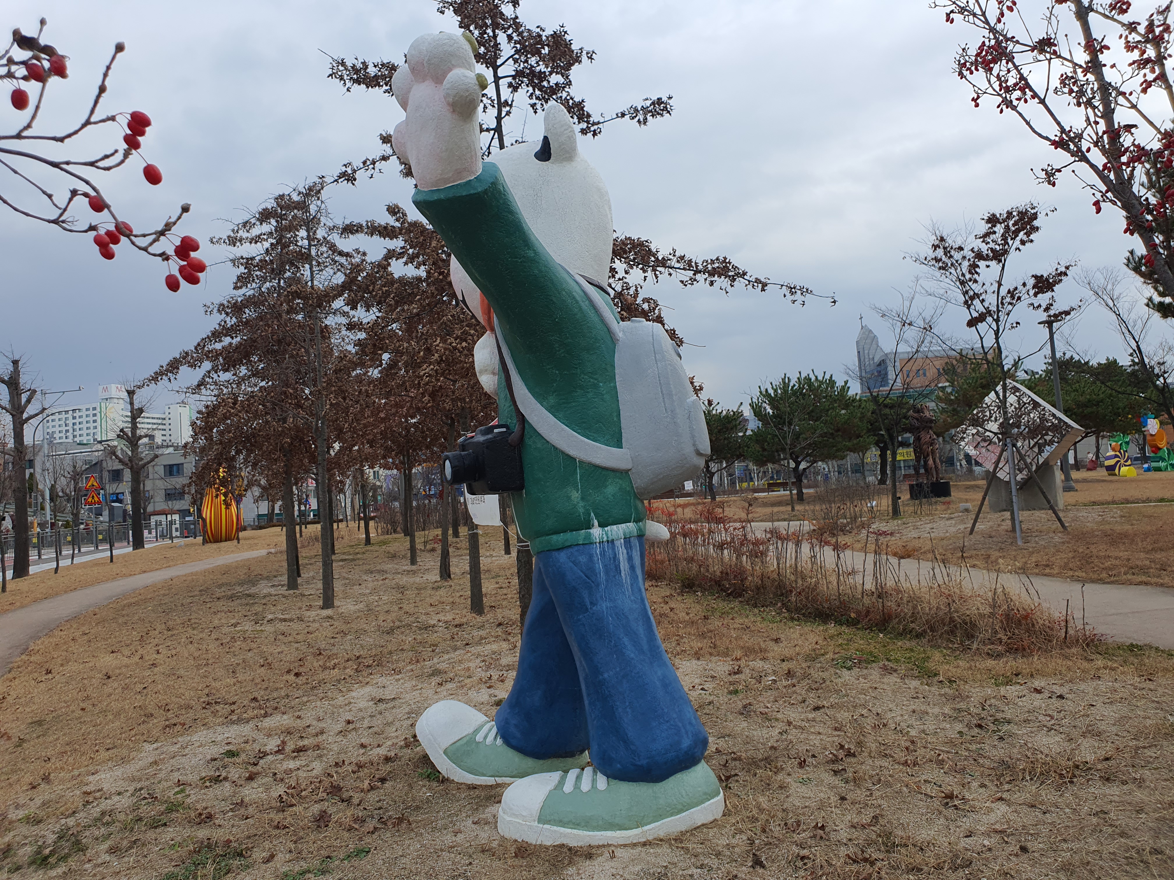조형물 옆으로 돌아가서 보니 정말 배낭가방 메고 있네요. ㅎㅎ