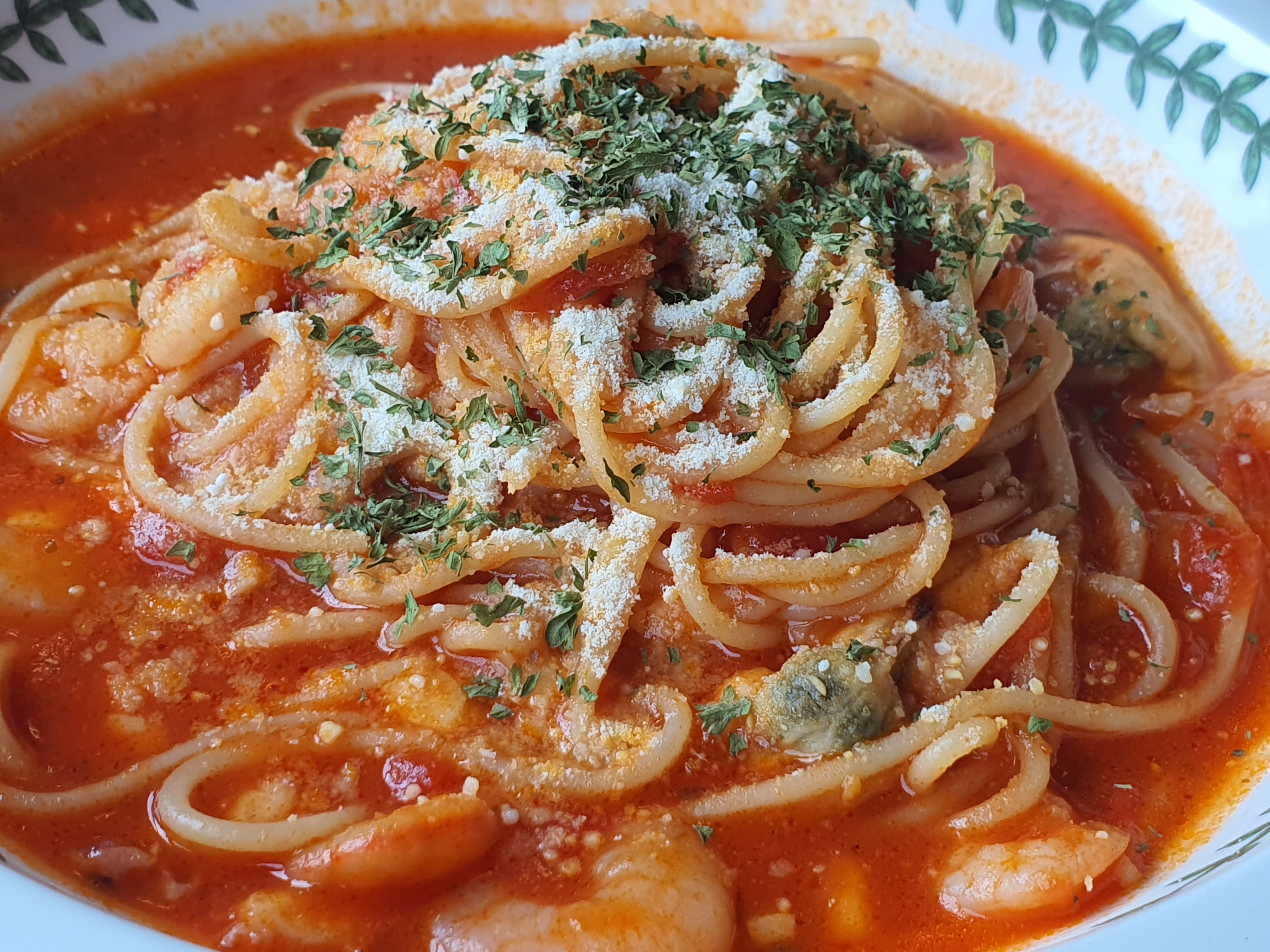 우리는 해물 스파게티와 김치 볶음밥을 주문했답니다.
